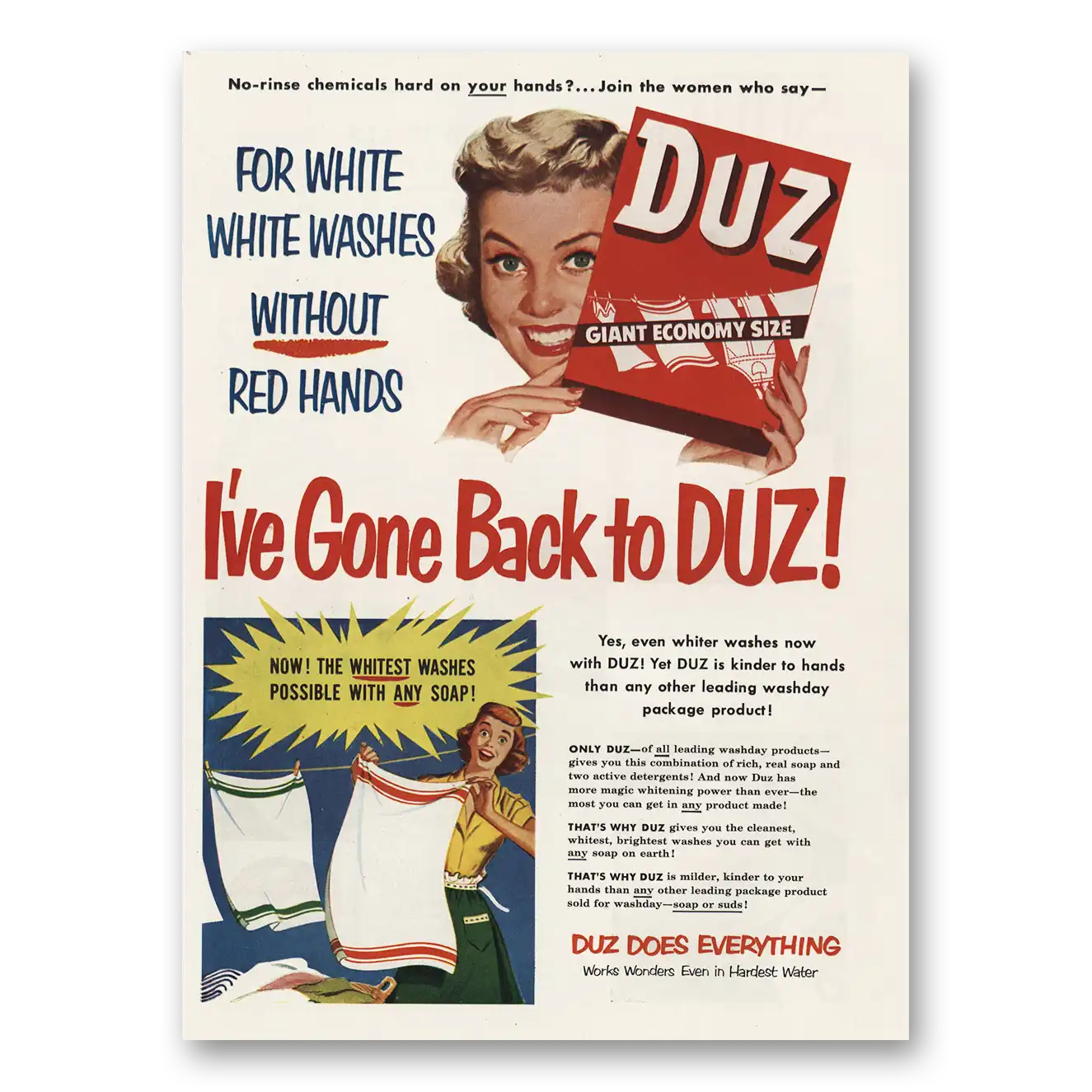 This is an original 1951 Duz Detergent print ad published by Duz Detergent.