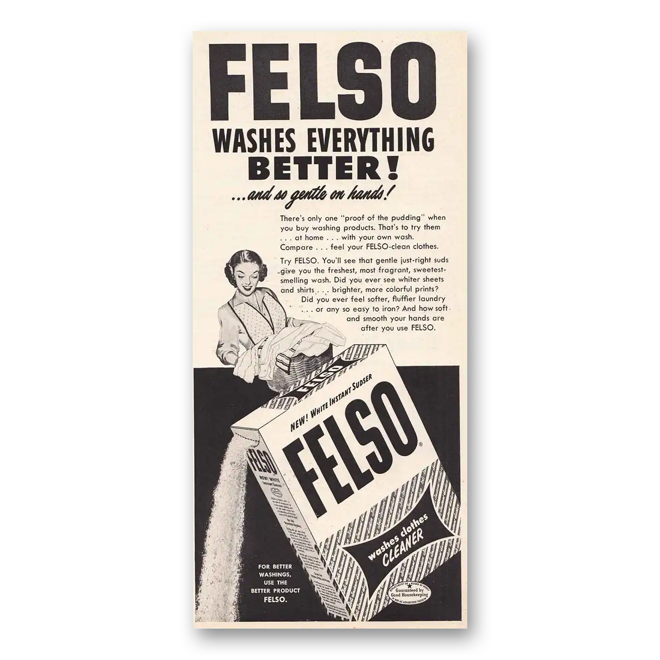 1951 Felso Cleaner Detergent Print Ad | Cleaner Washes