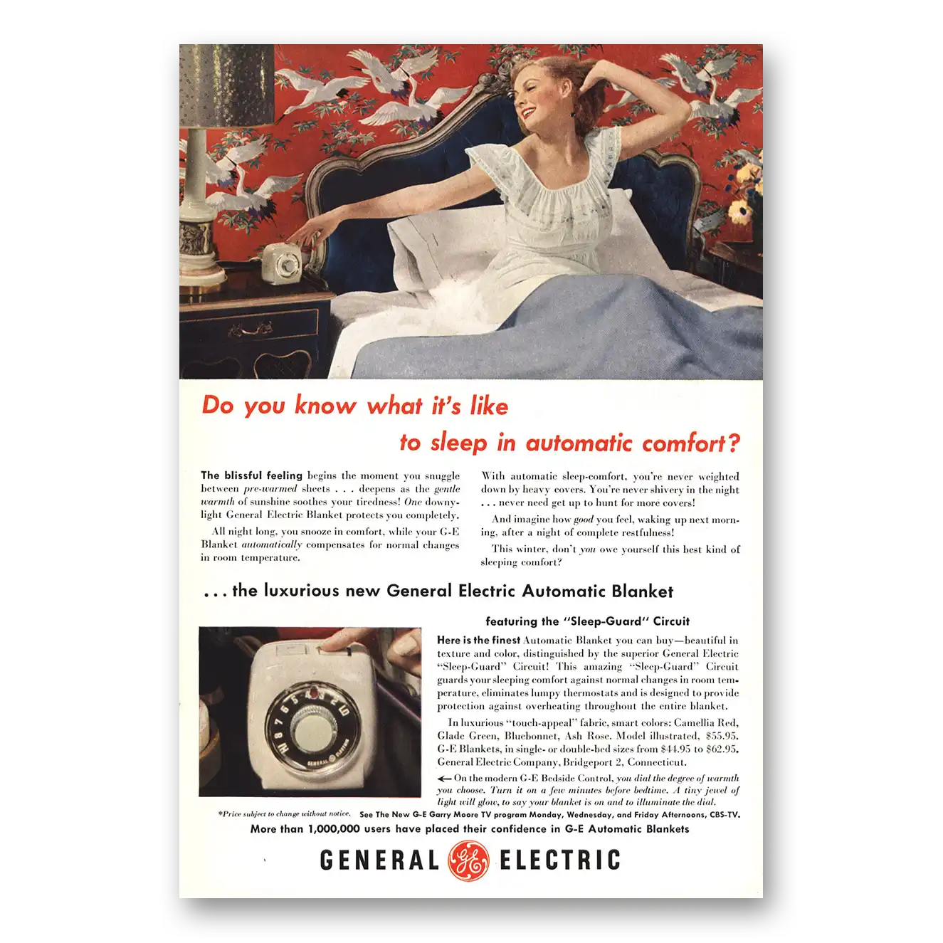 1951 General Electric Blanket Print Ad | Sleep Automatic Comfort