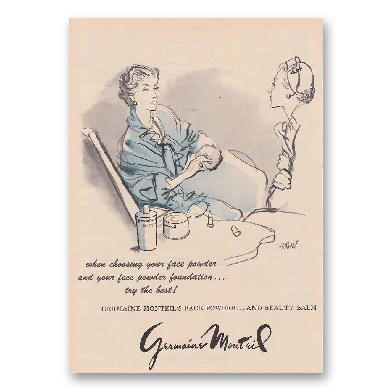 1951 Germaine Monteil Cosmetics Print Ad | Face Powder
