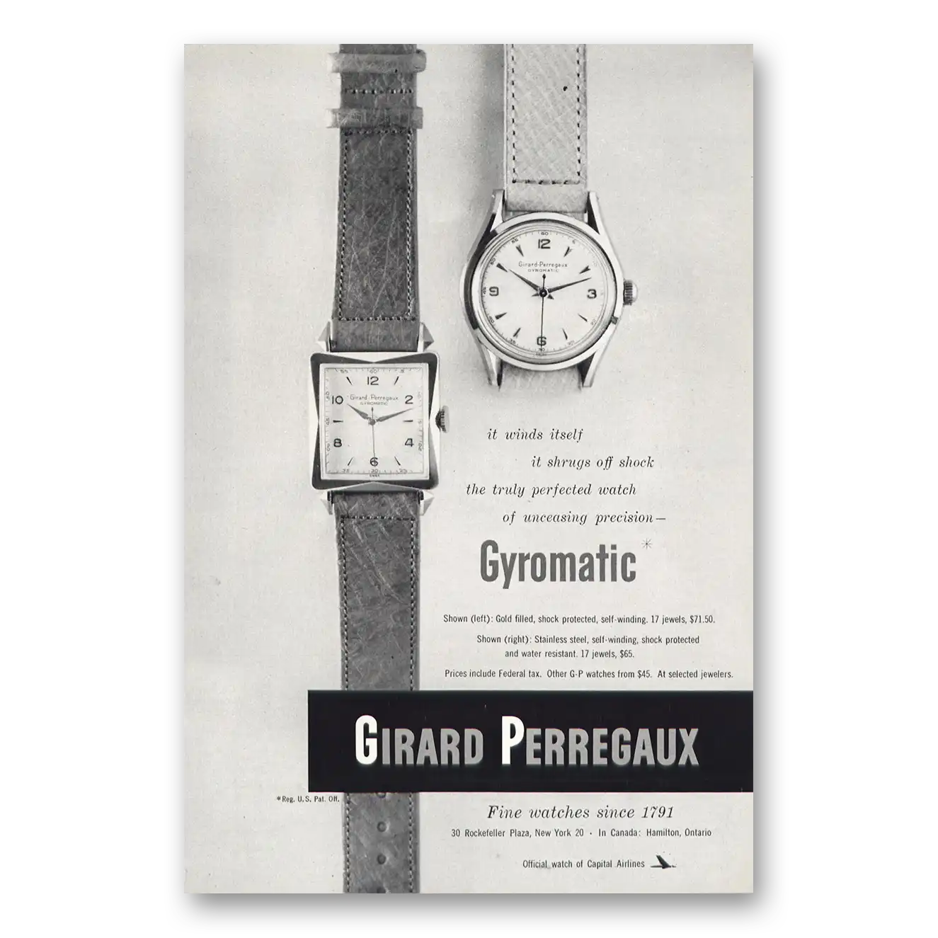 1951 Girard Perregaux Print Ad | Gyromatic Watch