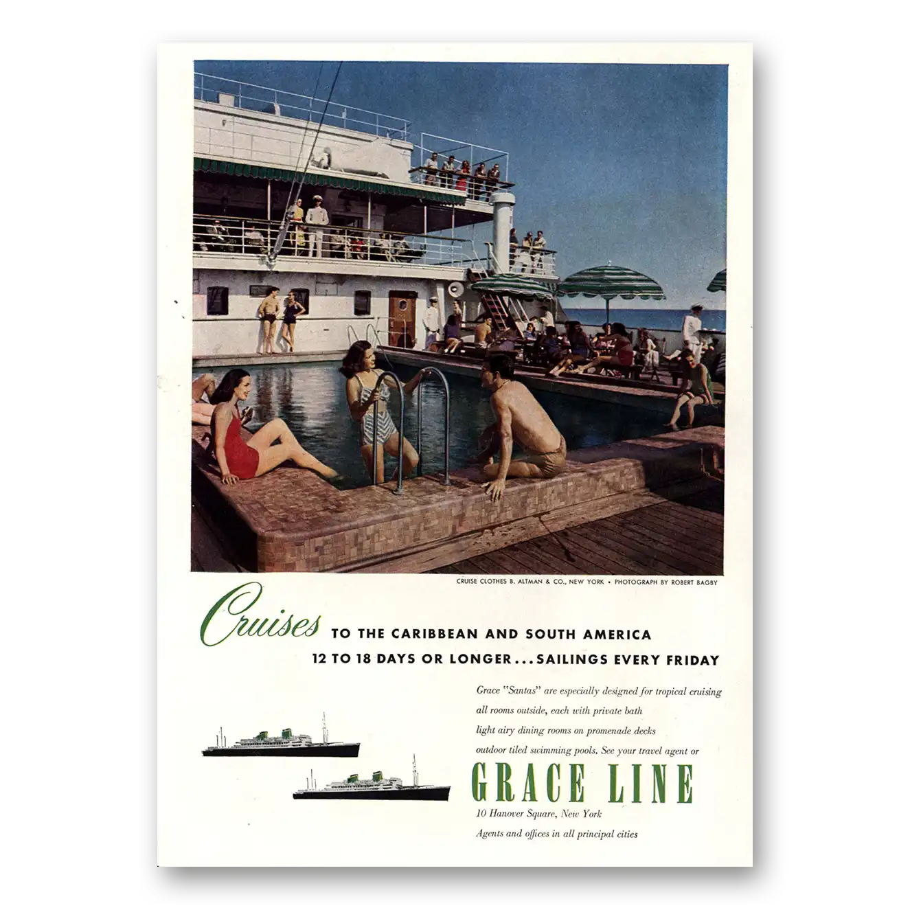 This is an original 1951 Grace Line print ad published by Grace Line.