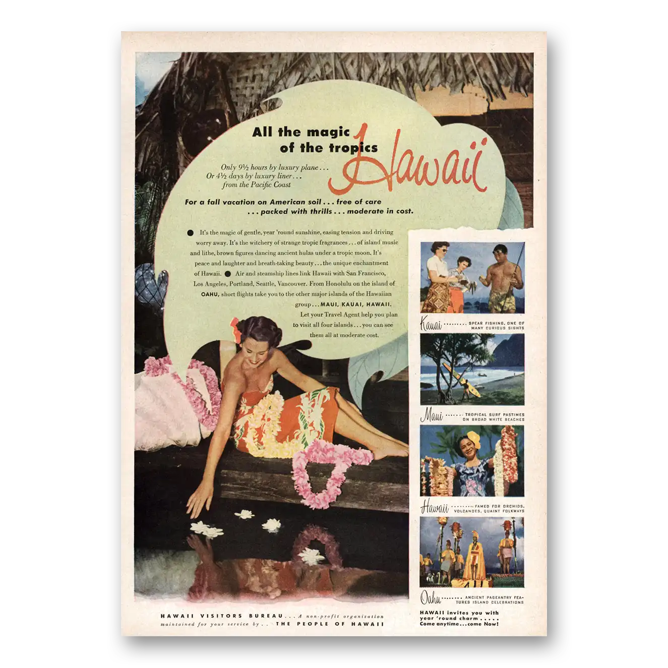 This is an original 1951 Hawaii print ad published by Hawaii Tourism.