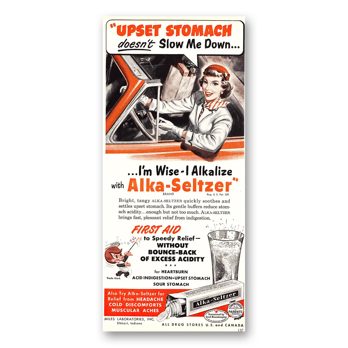This is an original 1952 Alka Seltzer print ad published by Miles Laboratories.