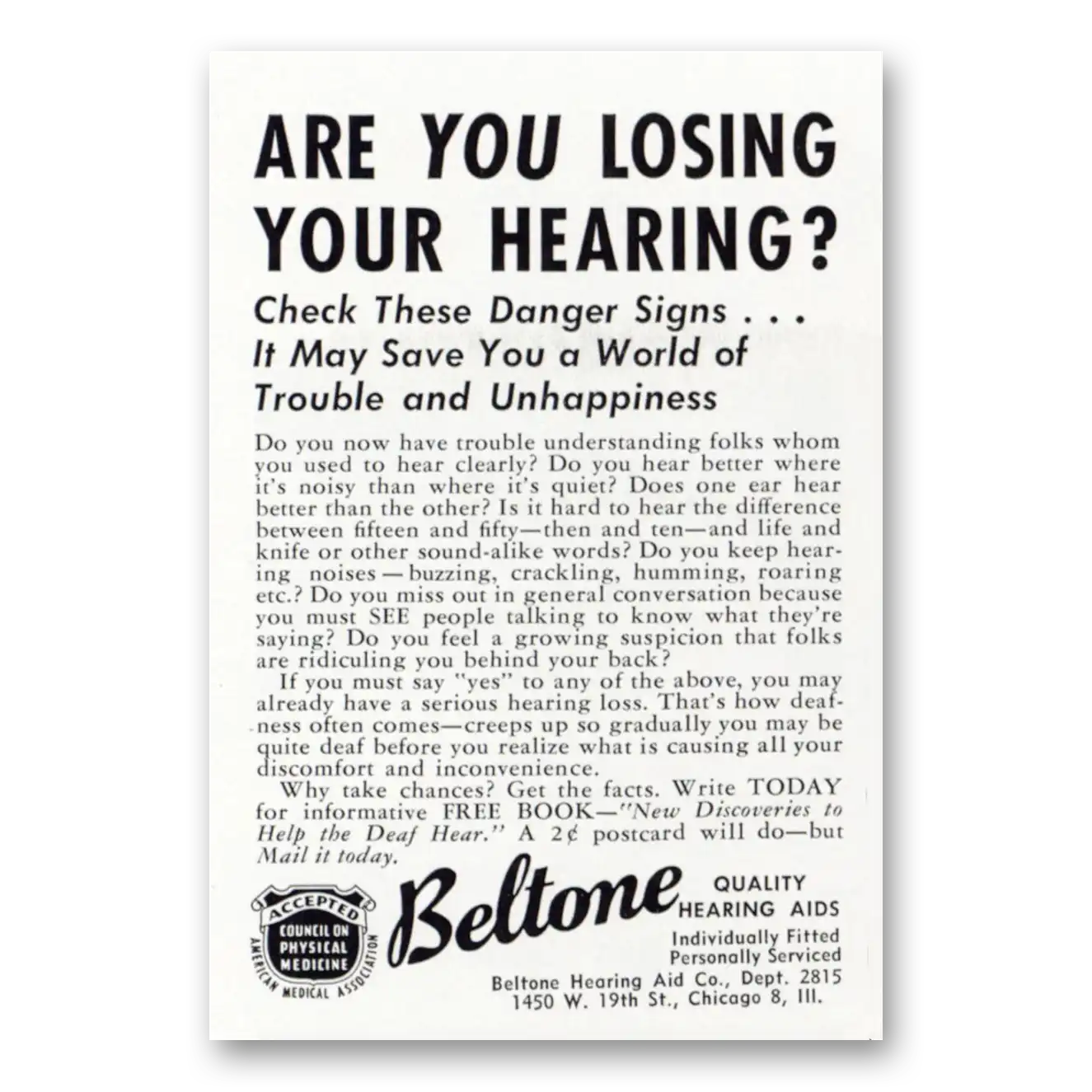 1952 Beltone Hearing Aid Print Ad | Losing Hearing
