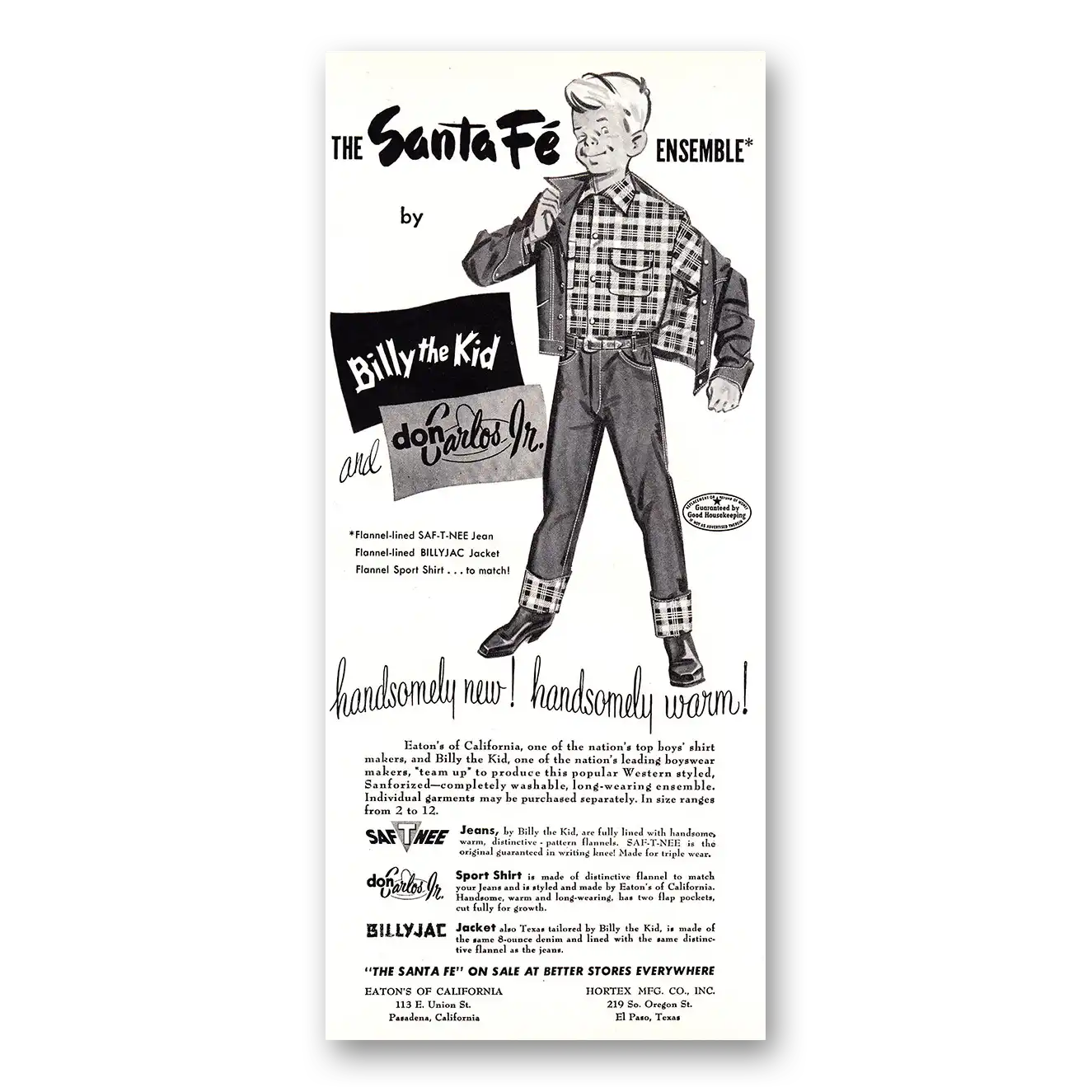 This is an original 1952 Billy the Kid print ad published by Hortex Mfg.