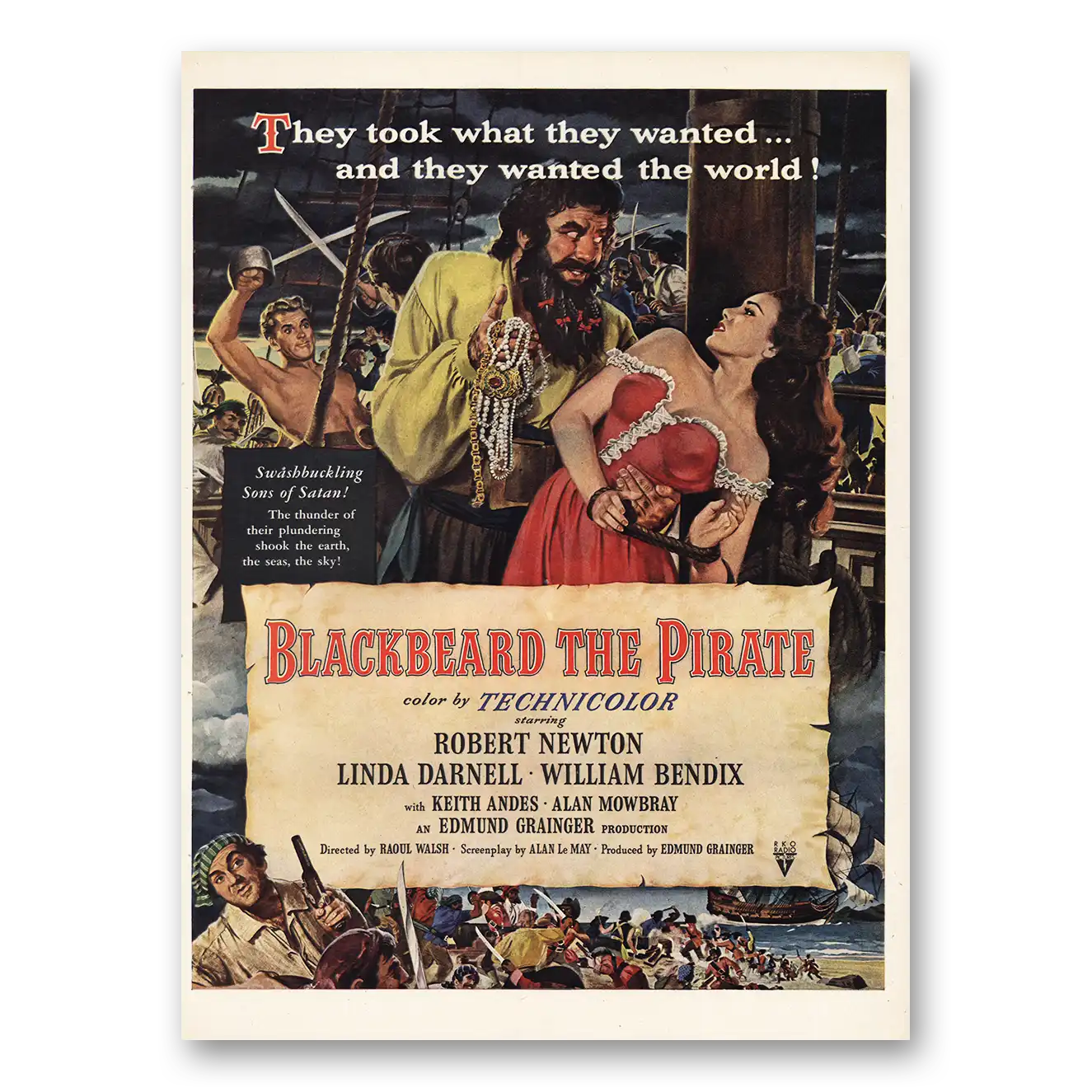 1952 Blackbeard the Pirate Movie Promo Print Ad | Robert Newton Linda Darnell