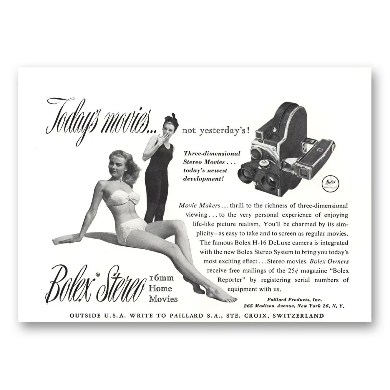 This is an original 1952 Bolex Movie Camera print ad published by Bolex.