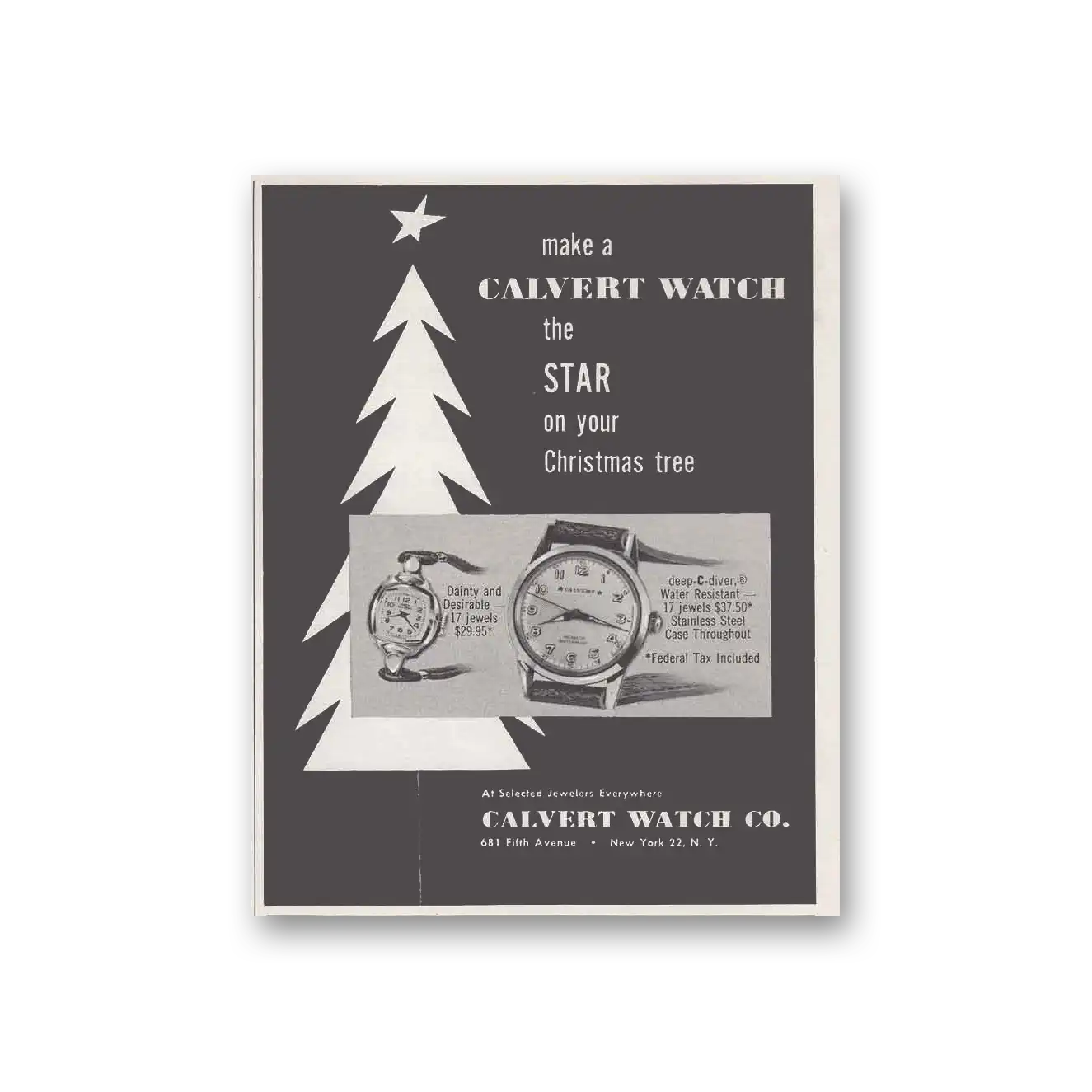 1952 Calvert Watch Co Print Ad | Christmas Tree