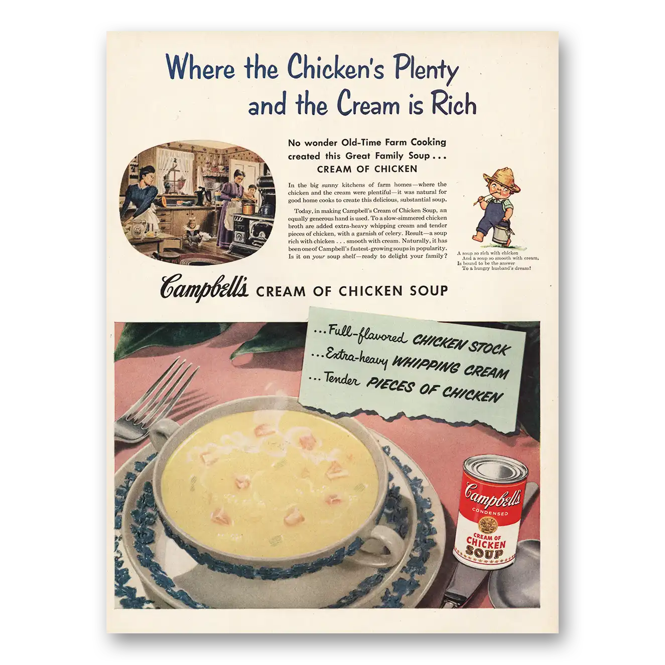 1952 Campbells Soup Print Ad | Chickens Plenty Cream Rich
