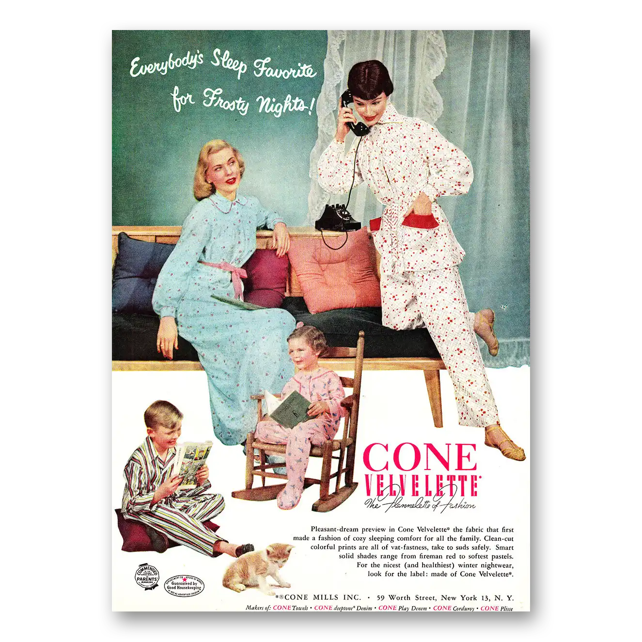 1952 Cone Mills Velvelette Print Ad | Frosty Nights