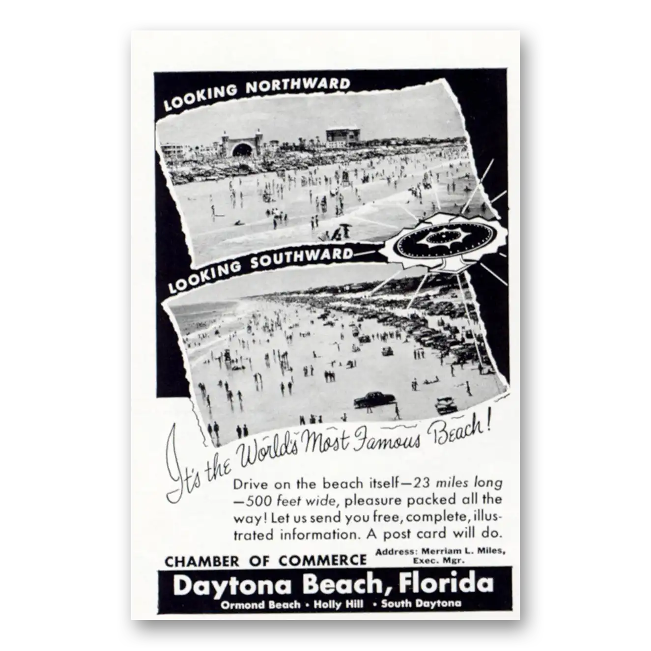1952 Daytona Beach Florida Print Ad | Famous Beach