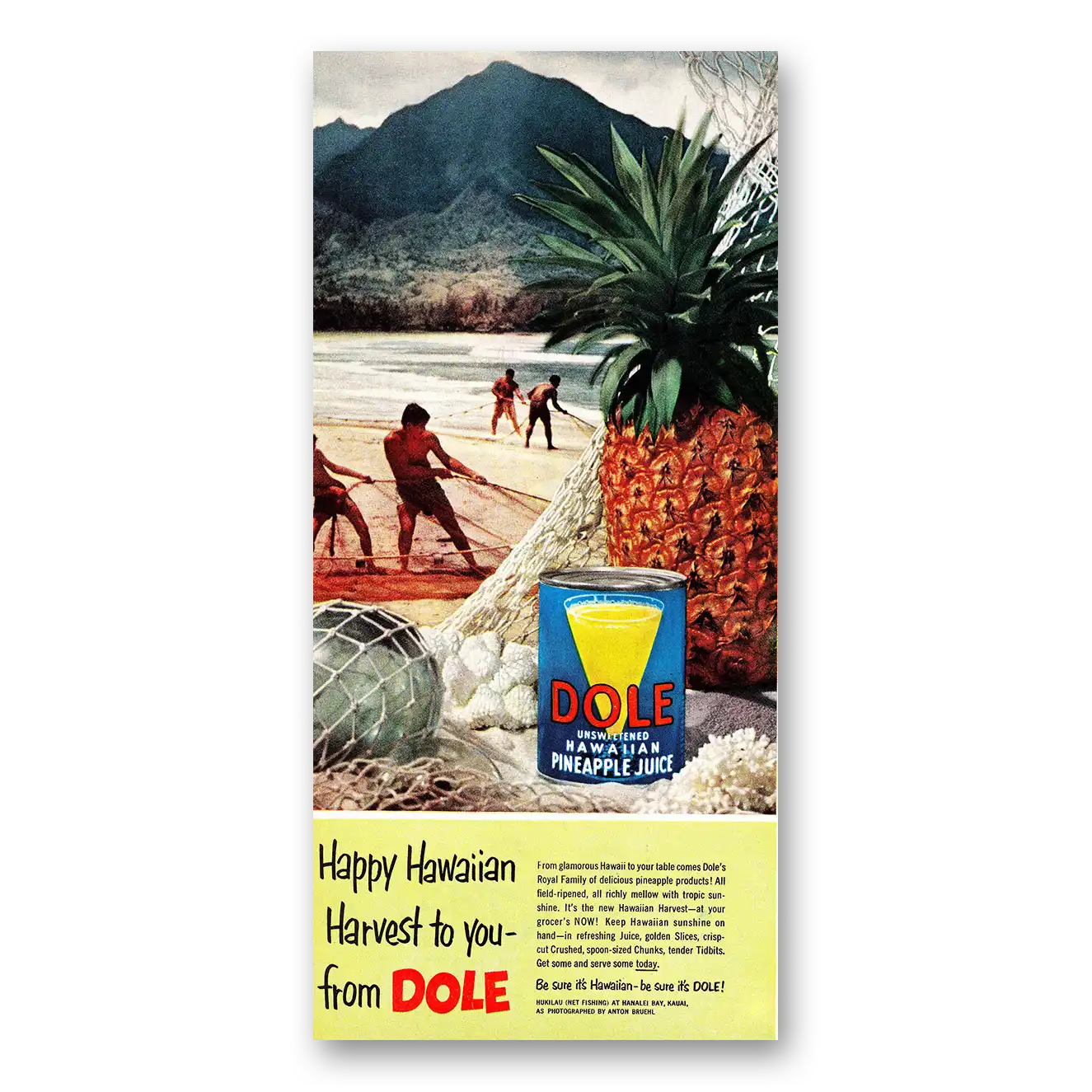 This is an original 1952 Dole Pineapple Juice print ad published by Dole.