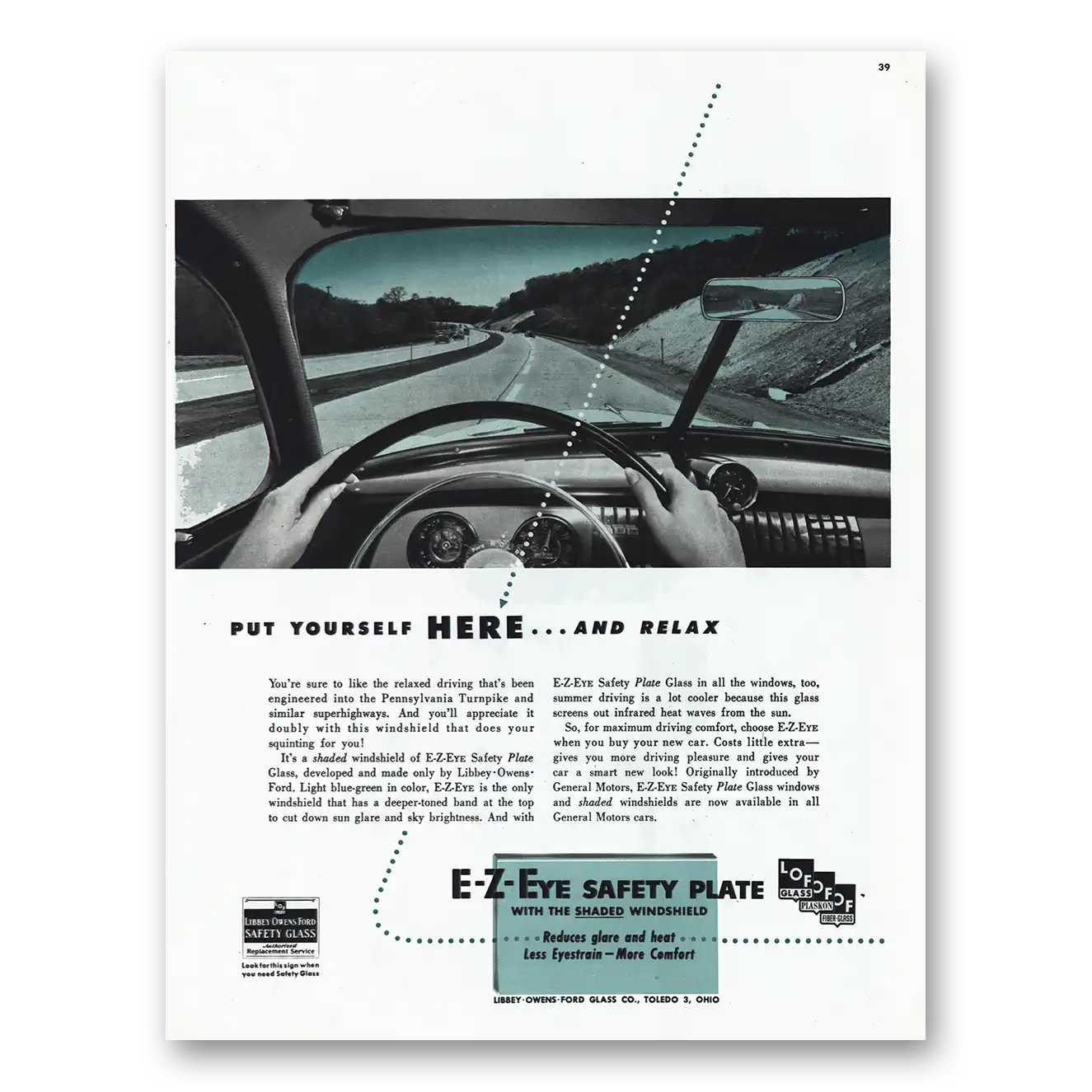 This is an original 1952 E Z Eye Safety Plate print ad published by Libbey Owens Ford.