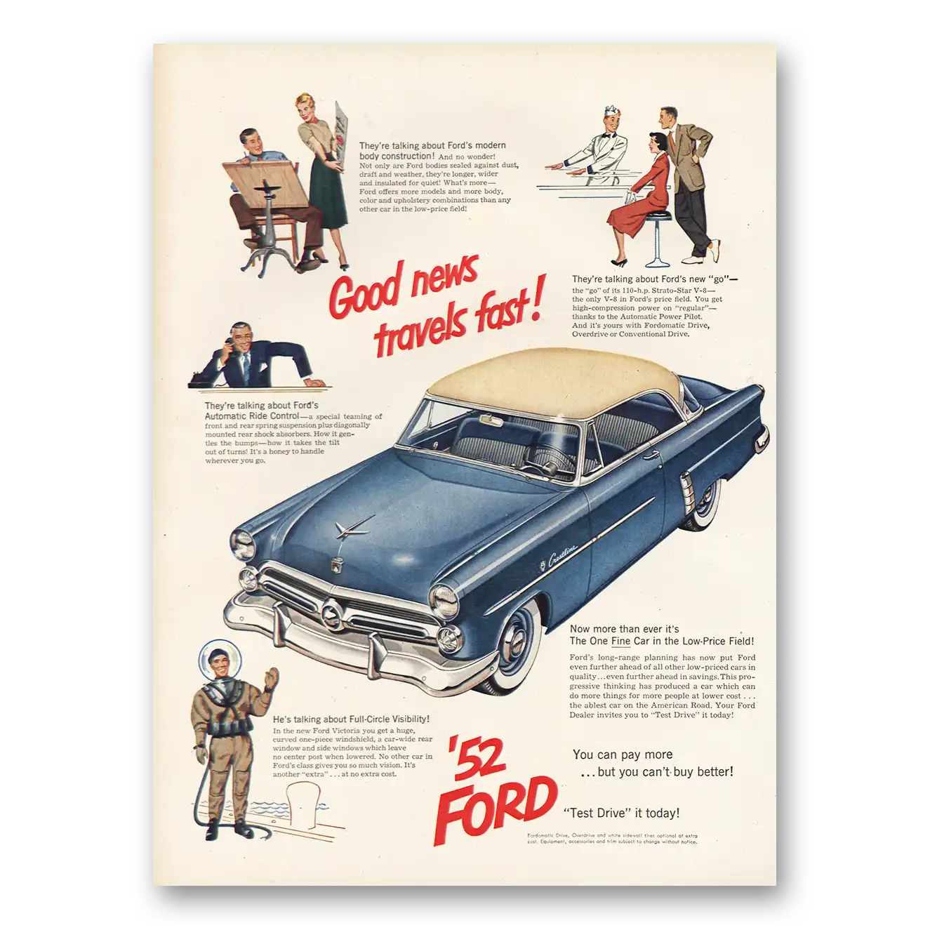 1952 Ford Print Ad | Good News Travels Fast