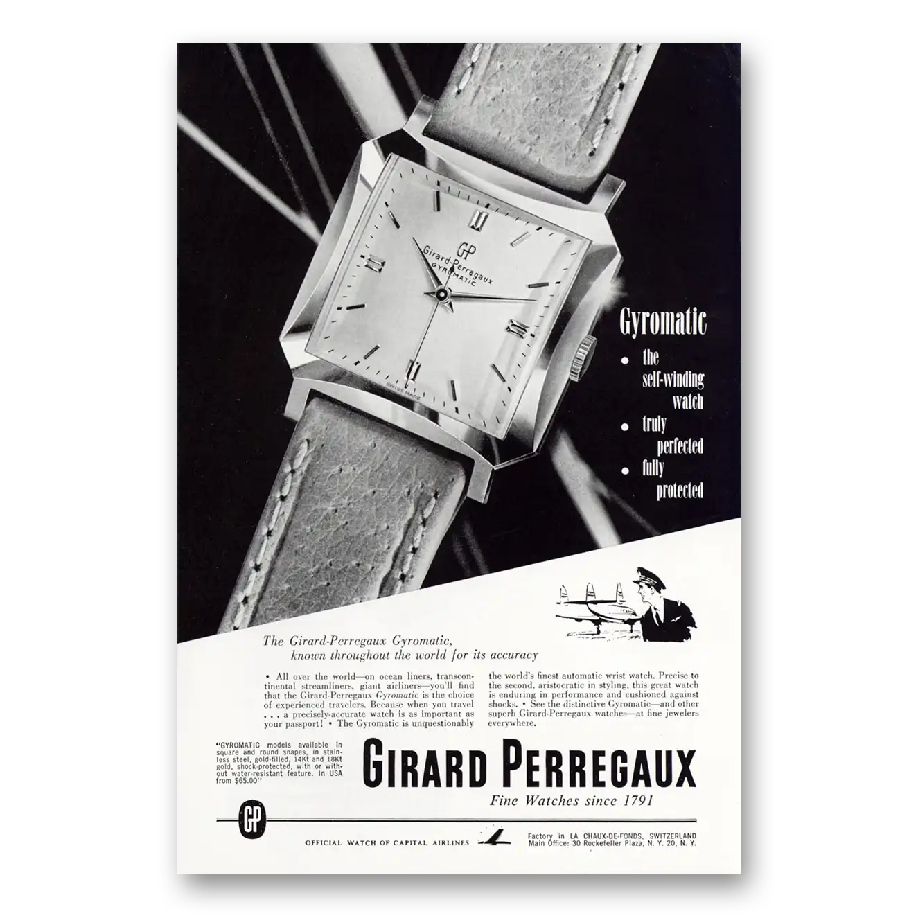 This is an original 1952 Girard Perregaux print ad published by Girard Perregaux.