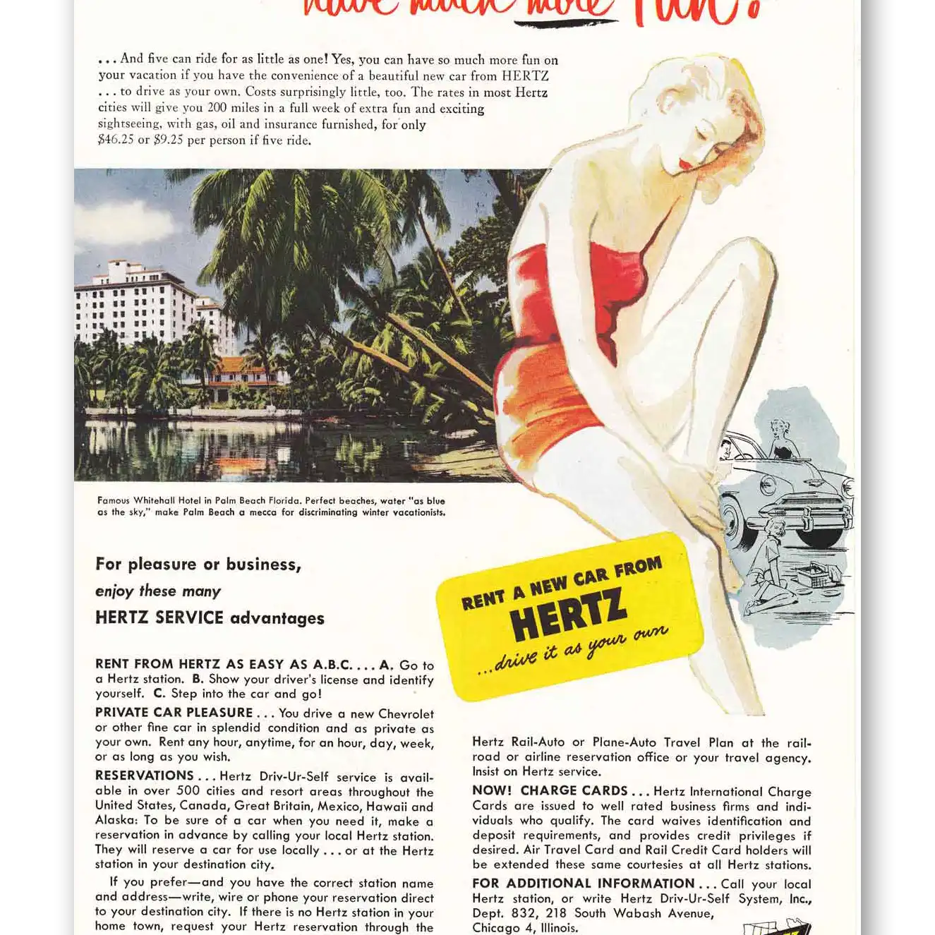 1952 Hertz Rent a Car Print Ad | Whitehall Hotel