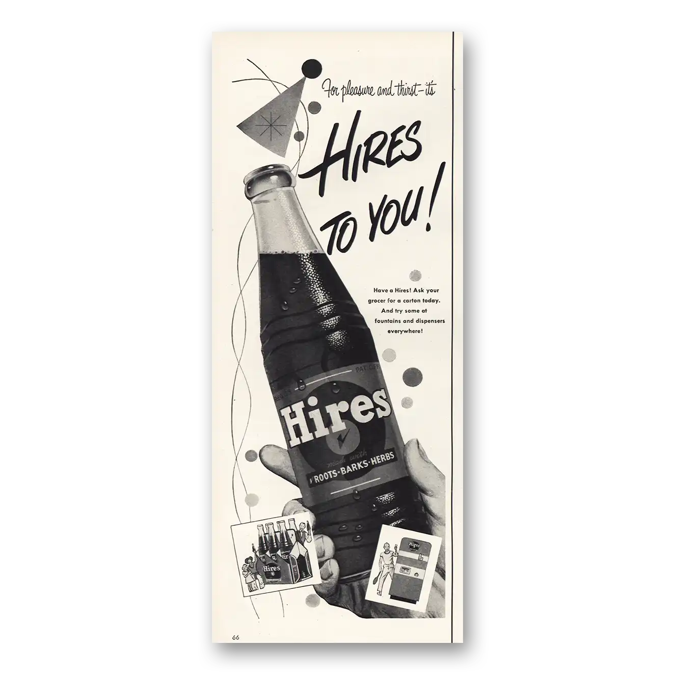 1952 Hires Root Beer Print Ad | For Pleasure And Thirst
