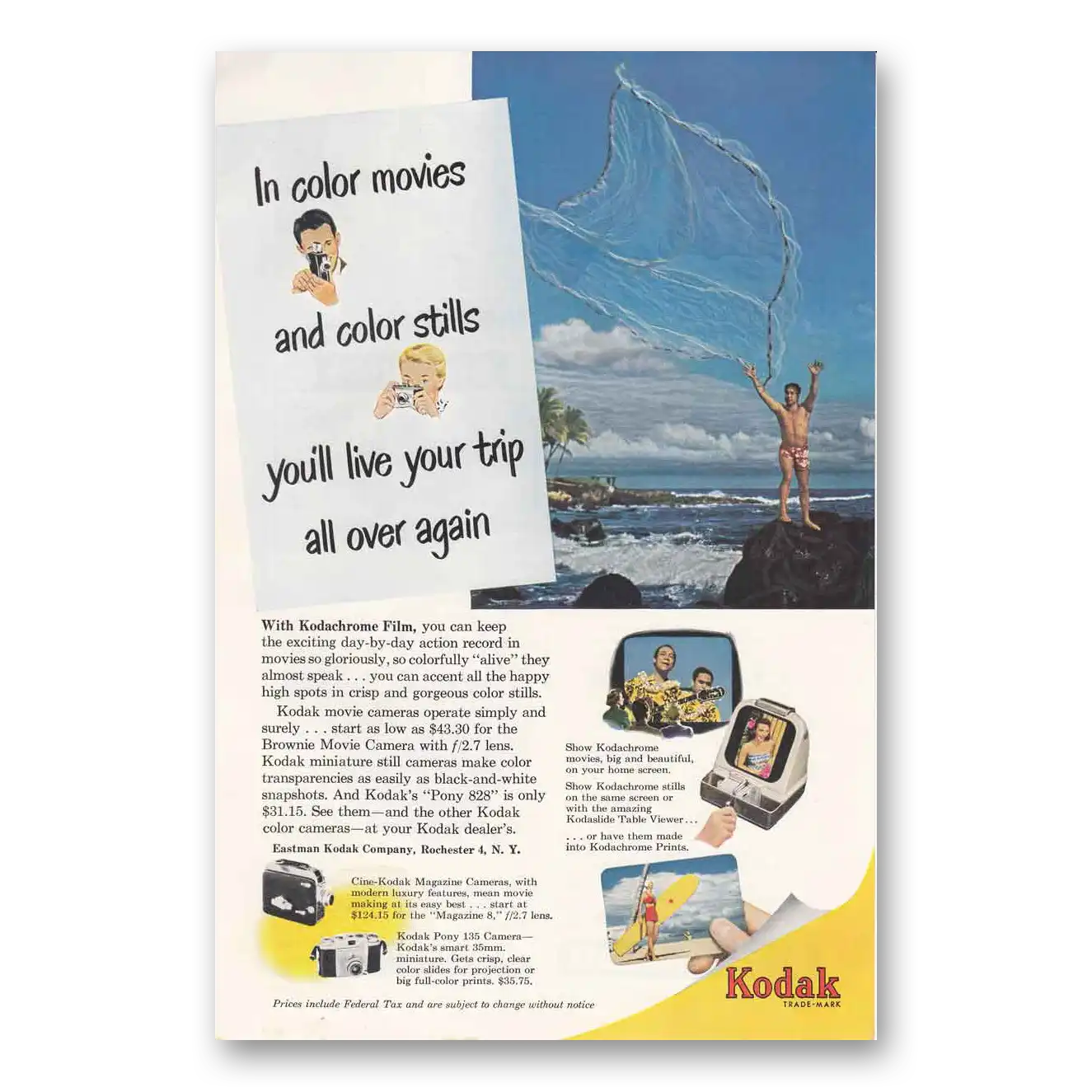 1952 Kodak Brownie Camera Print Ad | Color Movies