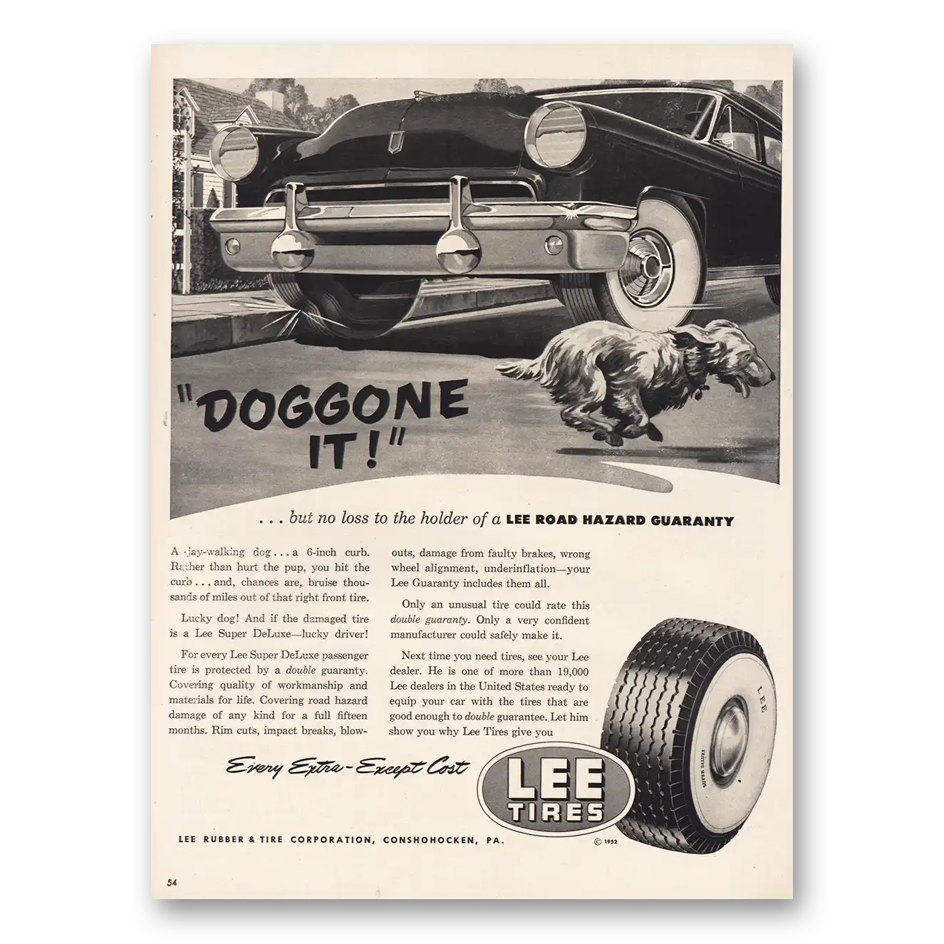 1952 Lee Tires Print Ad | Doggone It