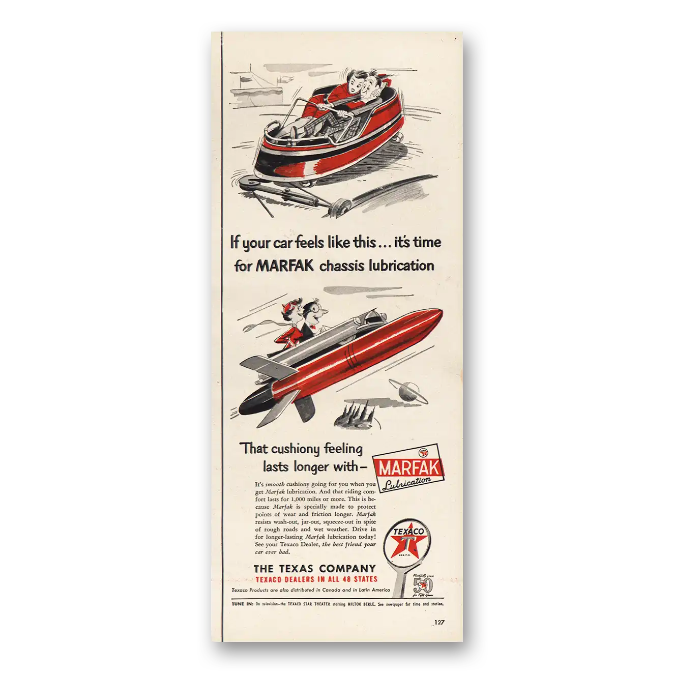 1952 Marfak Lubrication Print Ad | Car Feels Like This
