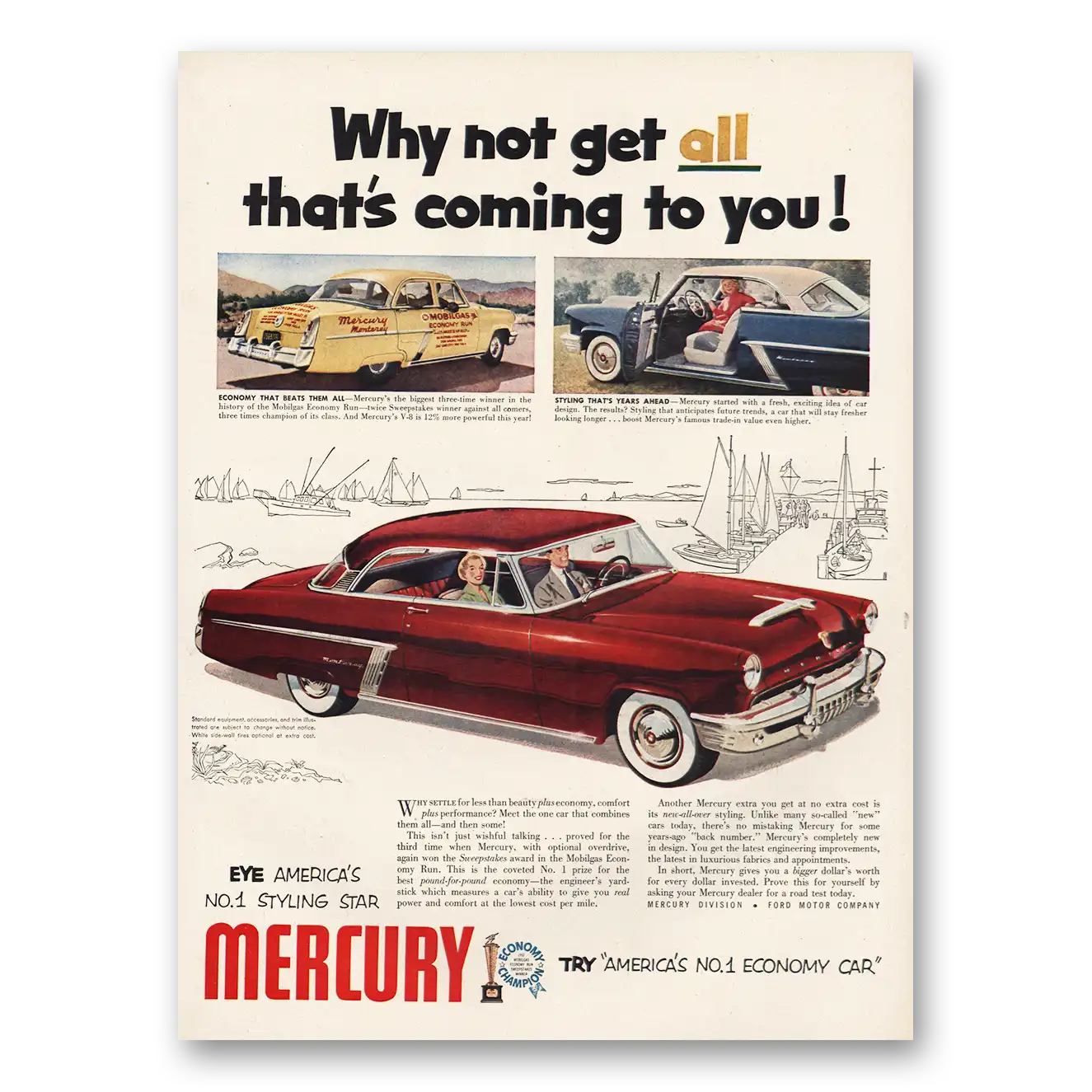 This is an original 1952 Mercury print ad published by Mercury.