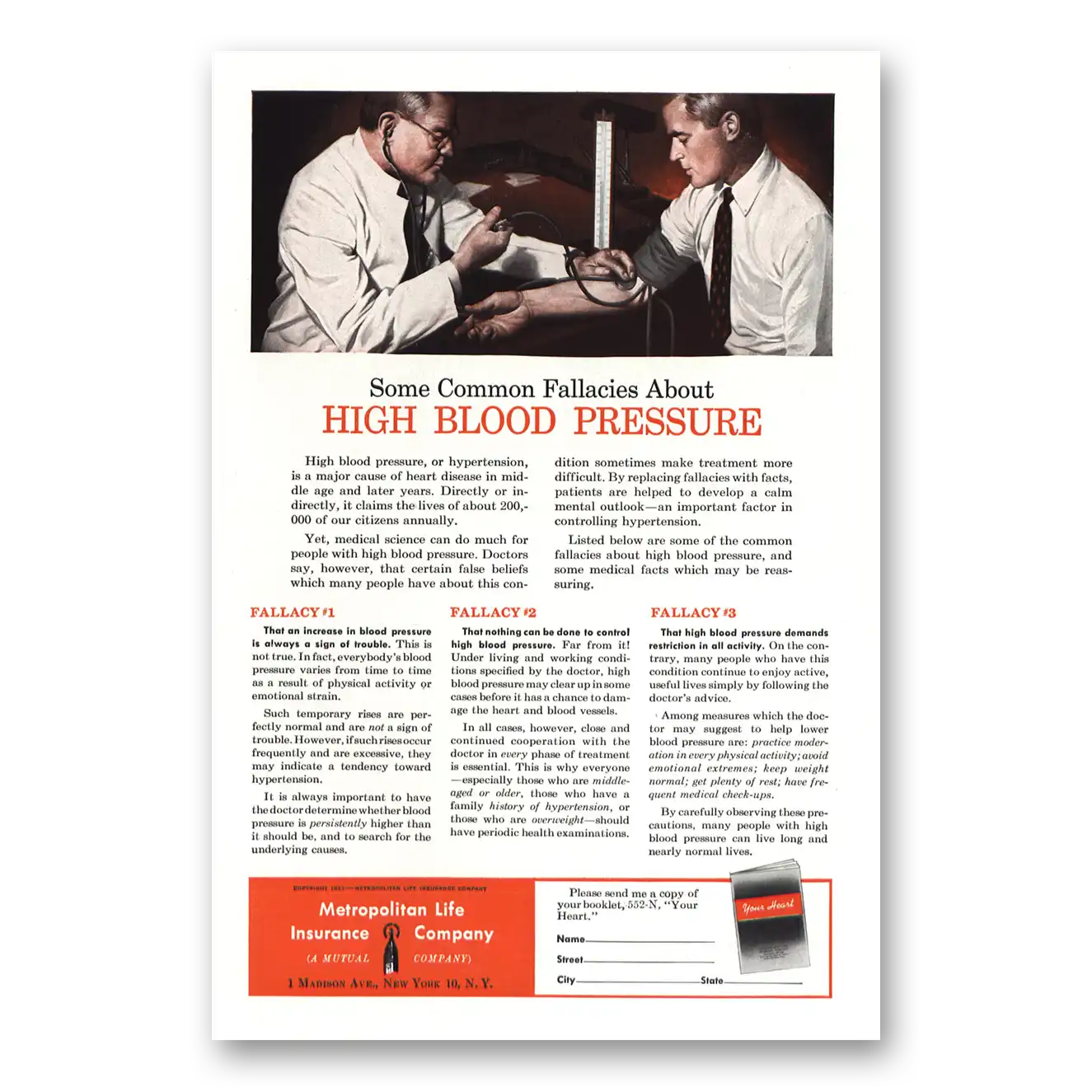 1952 Metropolitan Life Insurance Print Ad | Blood Pressure