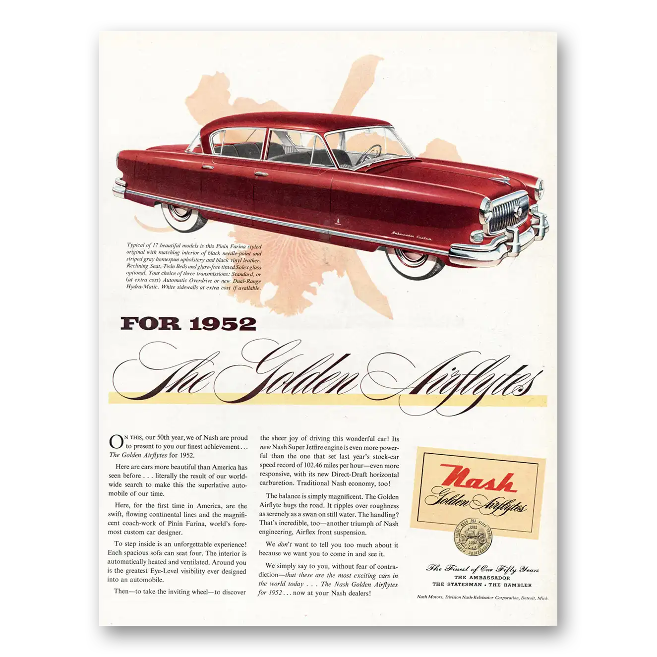 1952 Nash Motors Print Ad | Golden Airflytes