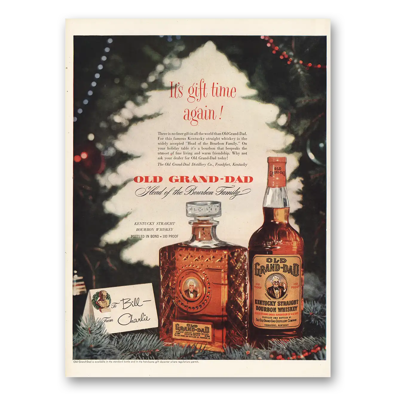 This is an original 1952 Old Grand-Dad print ad published by Old Grand-Dad.