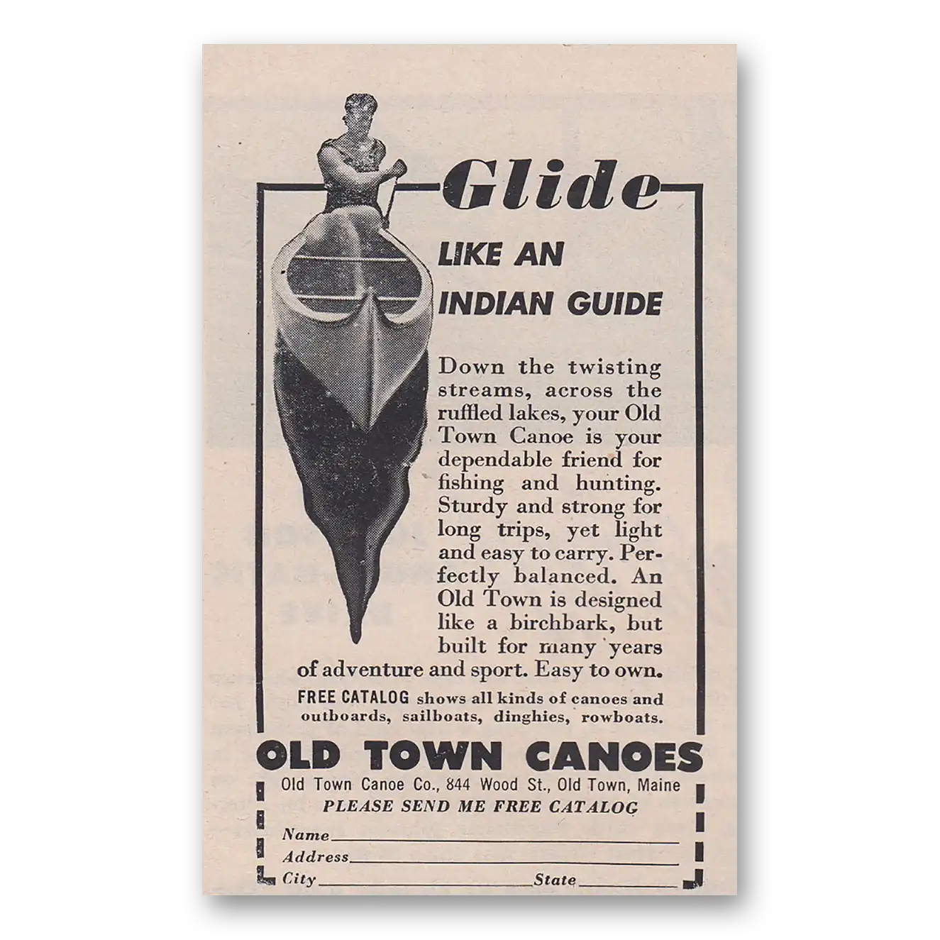 1952 Old Town Canoe Print Ad | Indian Guide