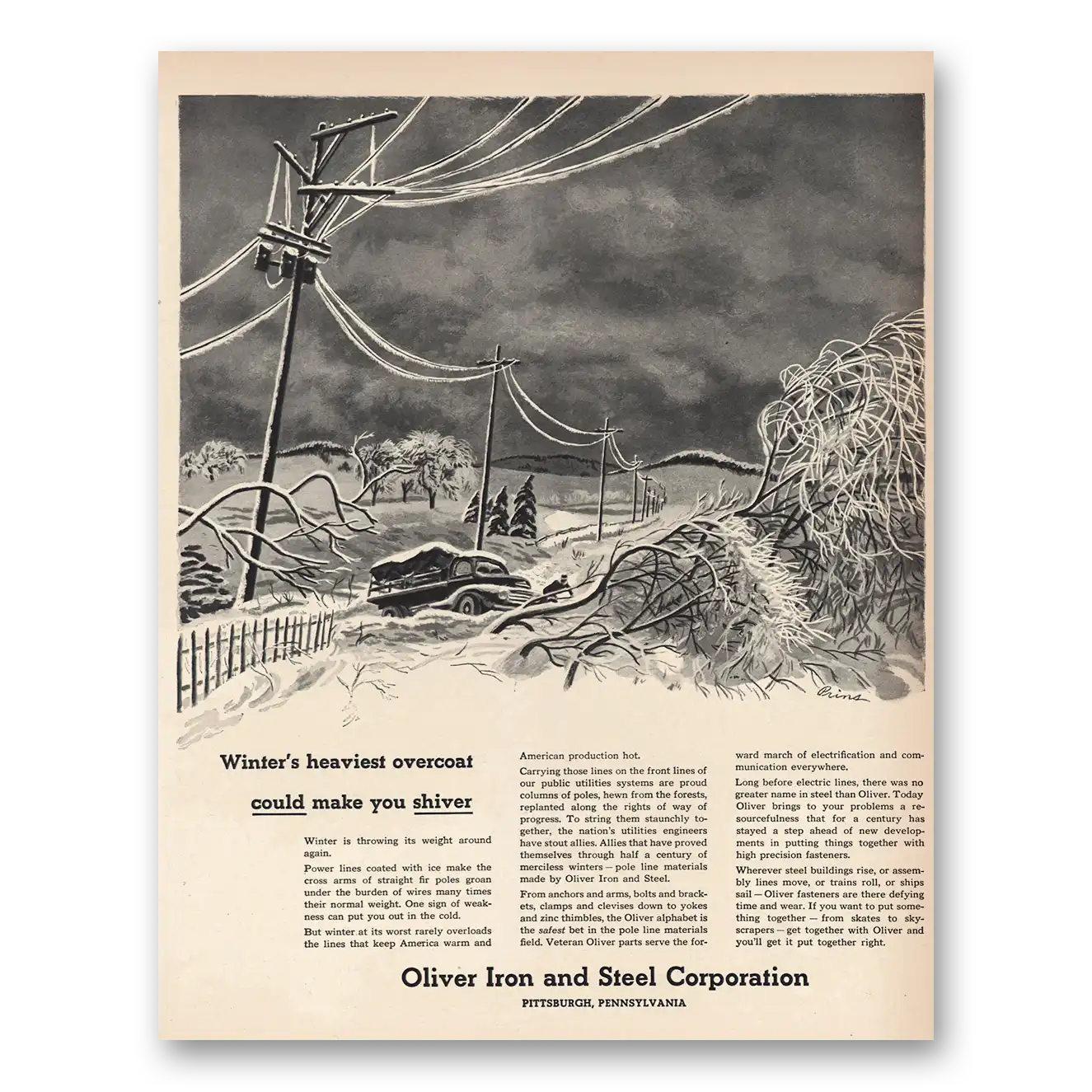 1952 Oliver Iron and Steel Print Ad | Heaviest Overcoat