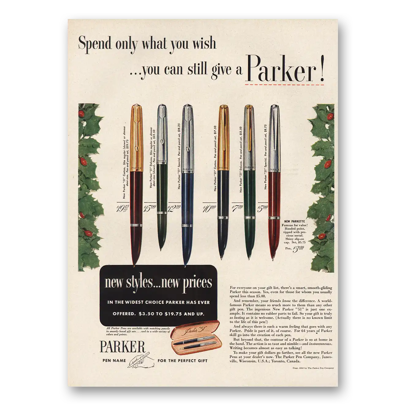 1952 Parker Pens Print Ad | Spend Only What You Wish