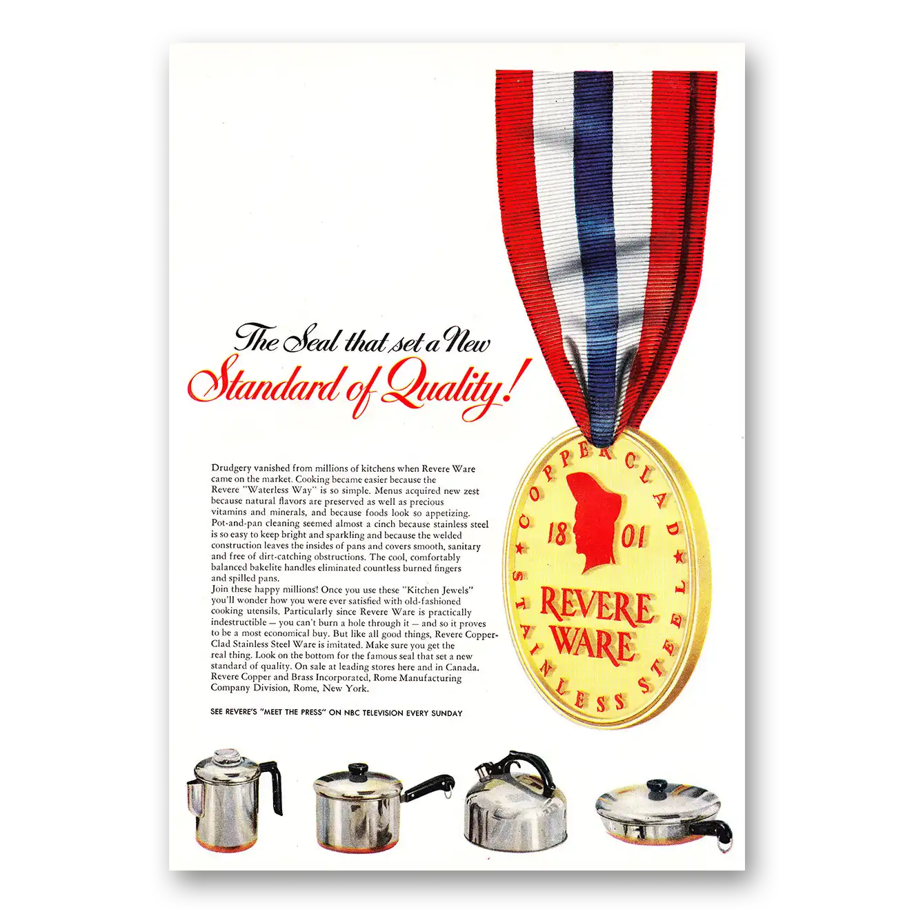 1952 Revere Ware Print Ad | Standard Quality