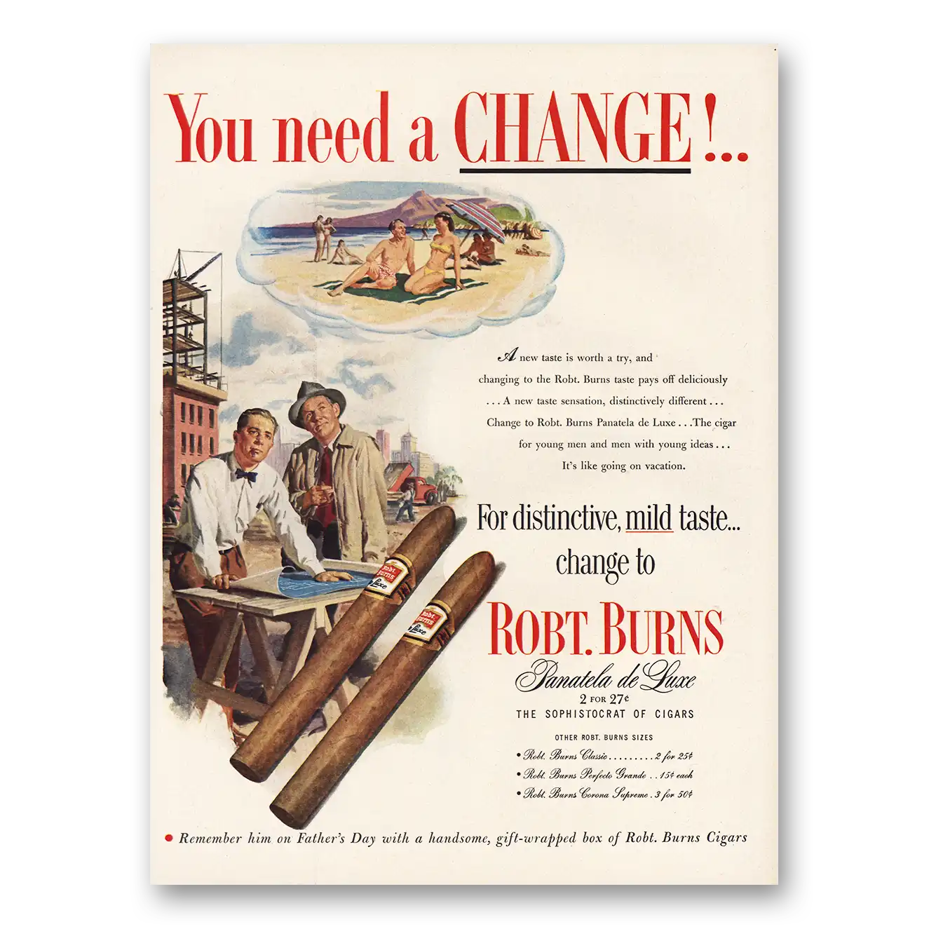 1952 Robt Burns Cigars Print Ad | You Need Change