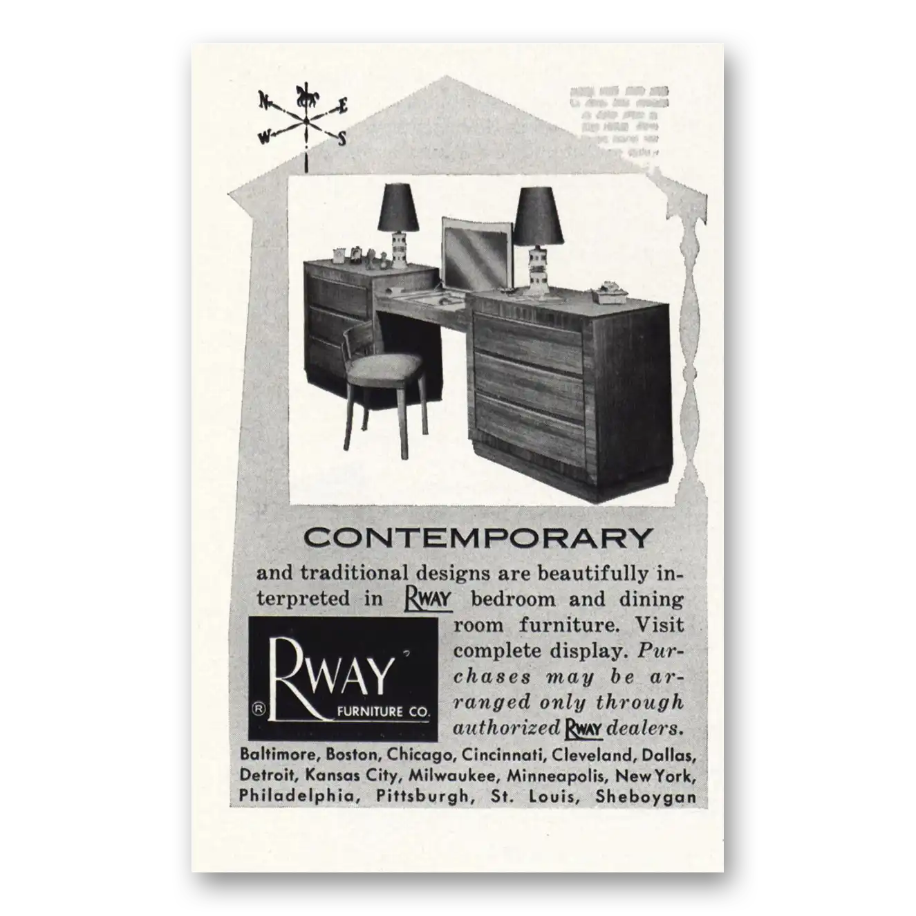 This is an original 1952 Rway Northern Furniture print ad published by Rway Northern Furniture.