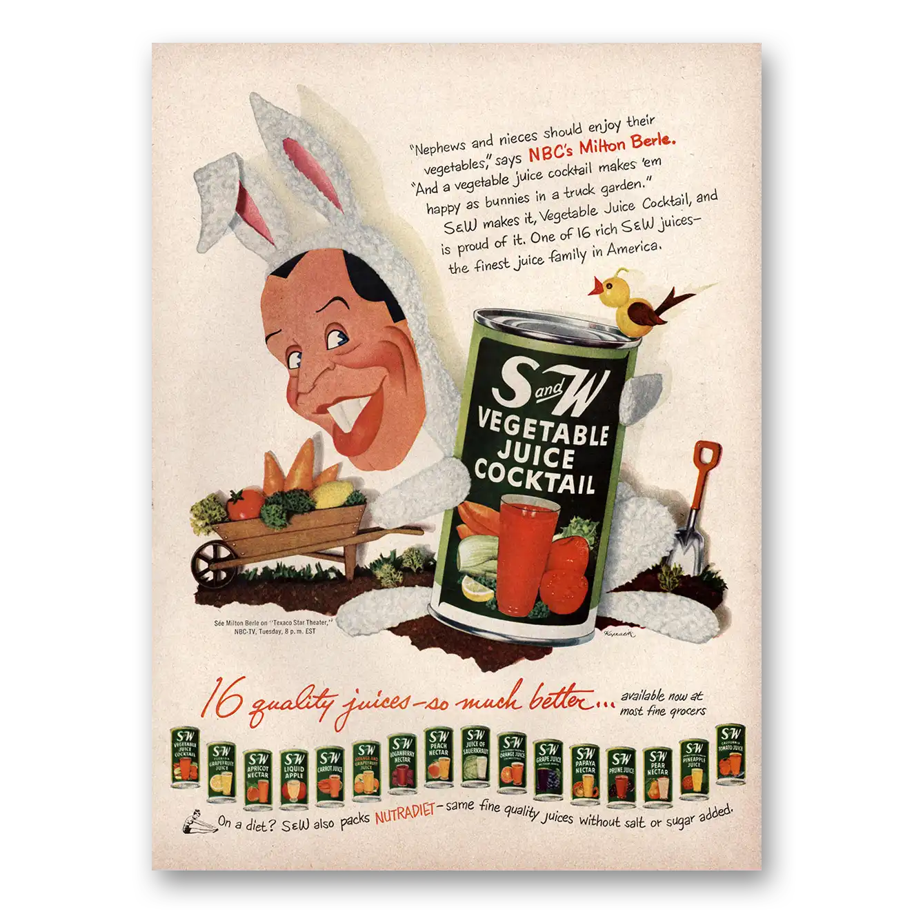 1952 S and W Vegetable Juice Cocktail Print Ad | Milton Berle