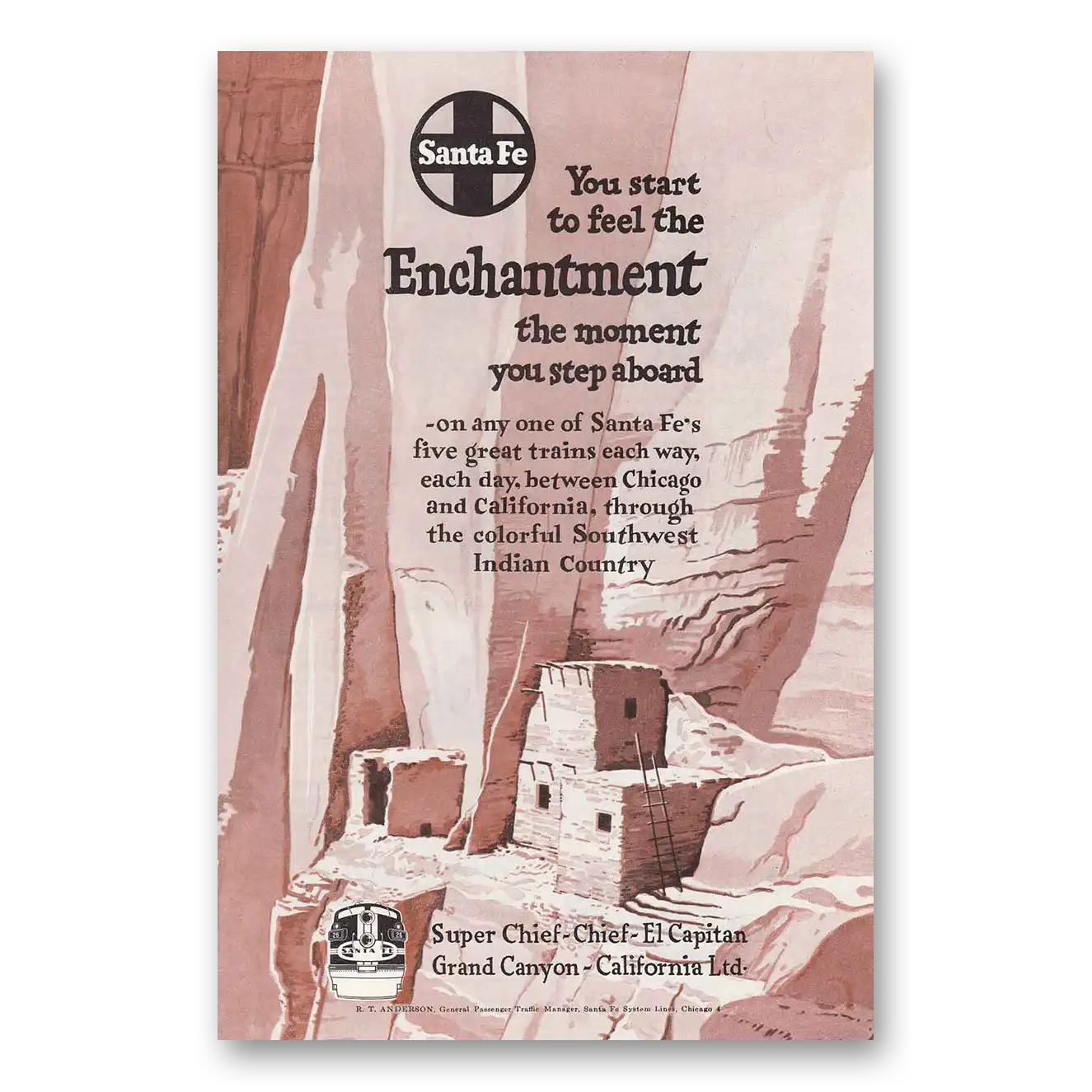 1952 Santa Fe Railway Print Ad | Enchantment