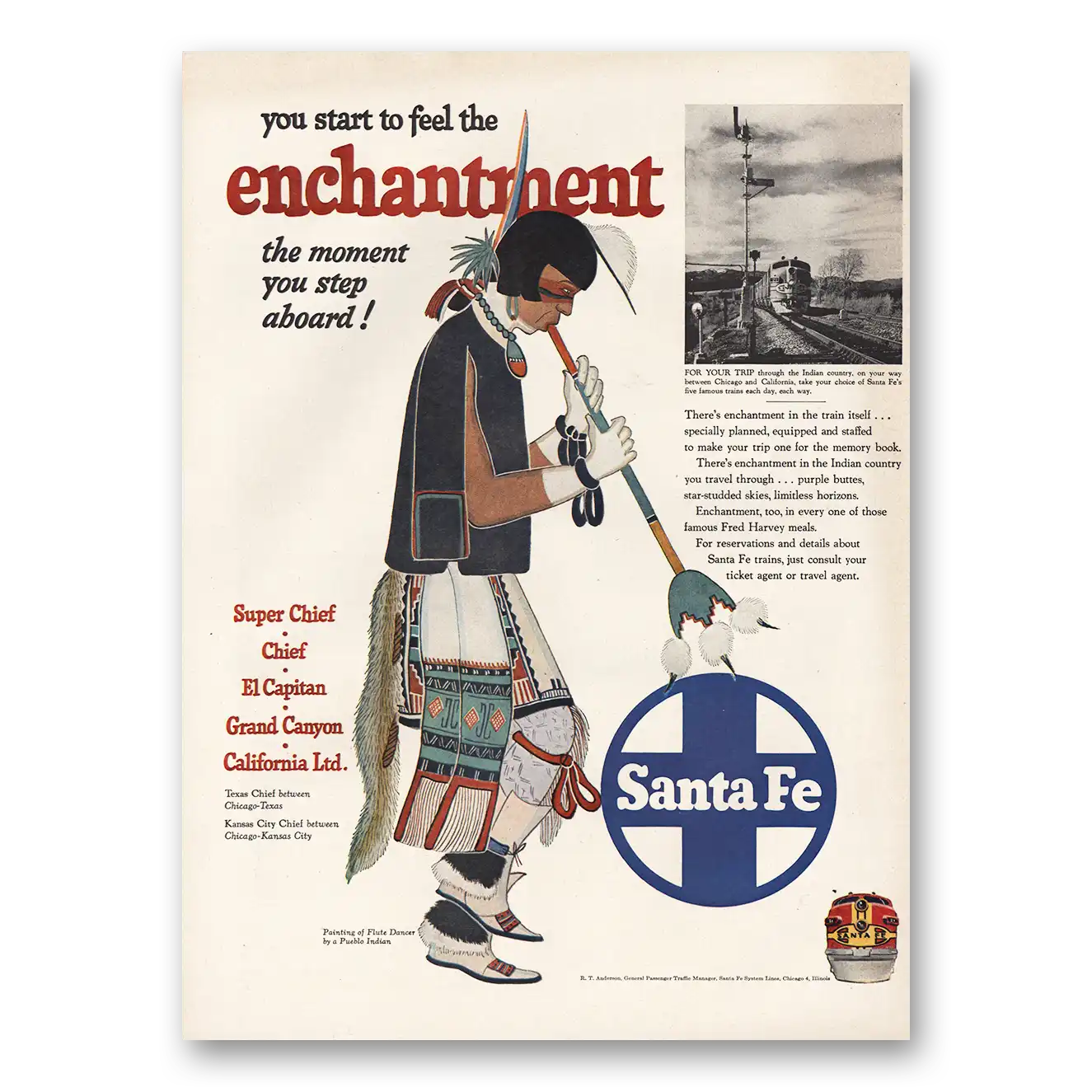 1952 Santa Fe Railway Print Ad | Start To Feel Enchantment
