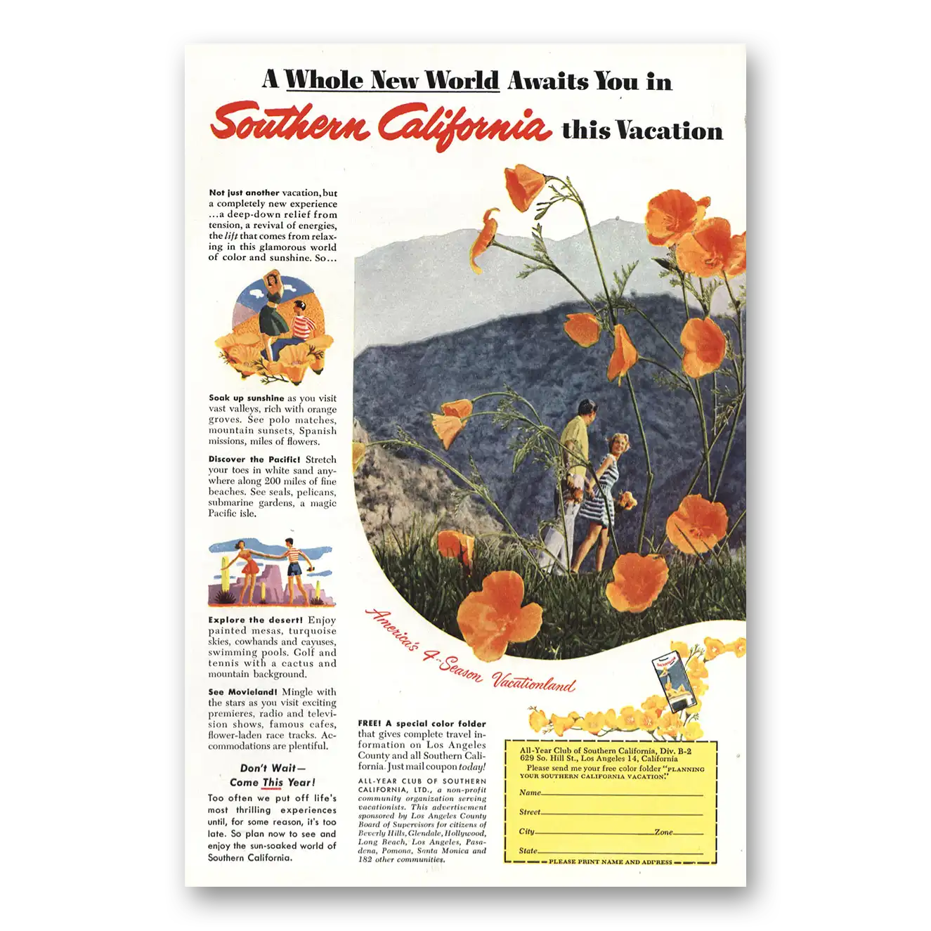 This is an original 1952 Southern California print ad published by Southern California Tourism.