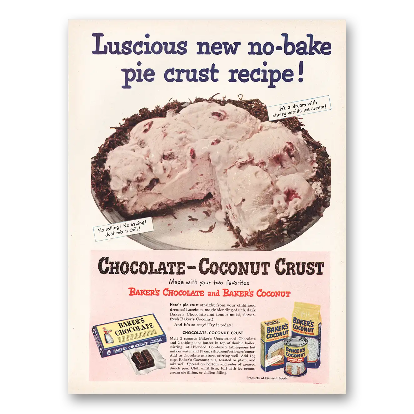 1953 Bakers Chocolate Print Ad | Chocolate Coconut Crust