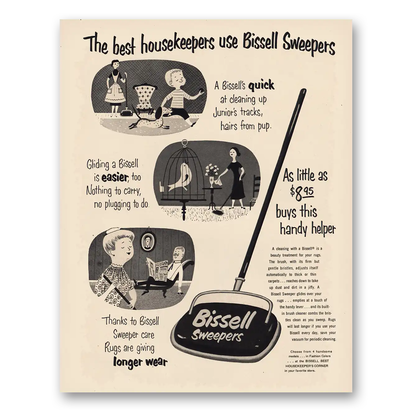 1953 Bissell Sweepers Print Ad | Sweepers Best Housekeepers
