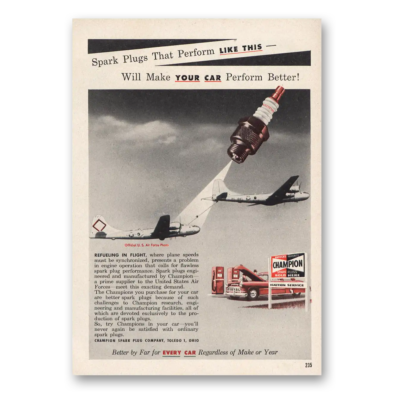 1953 Champion Spark Plugs Print Ad | Refueling In Flight