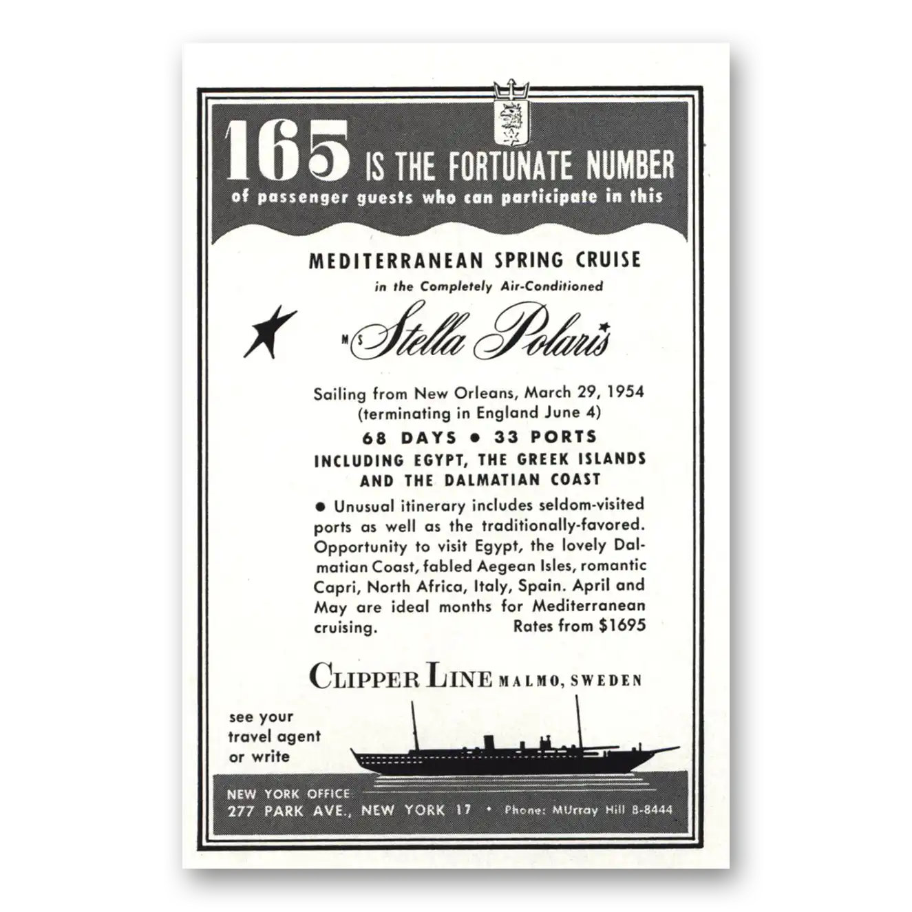 This is an original 1953 Clipper Line print ad published by Clipper Line.