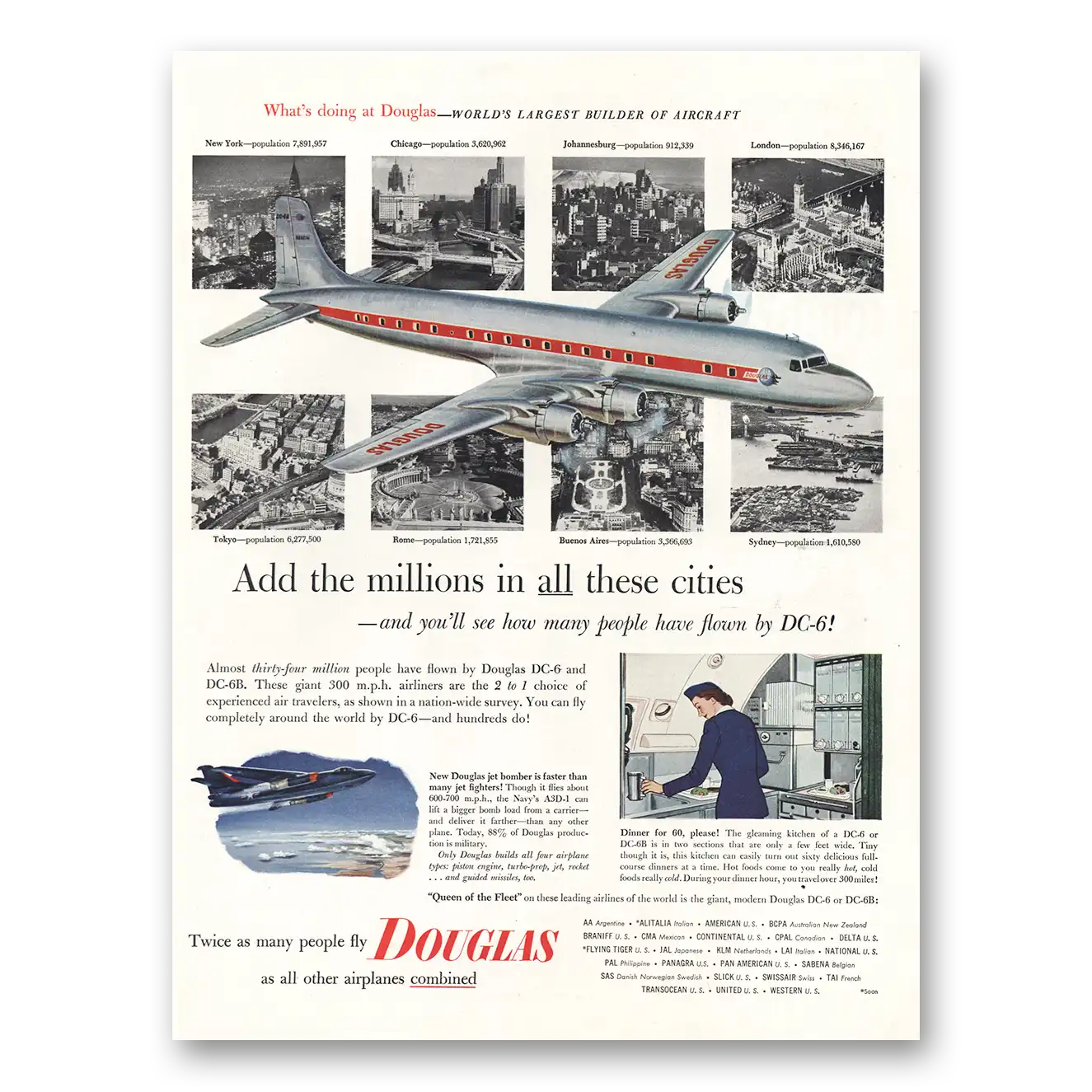 1953 Douglas Print Ad | Add The Millions In All These Cities