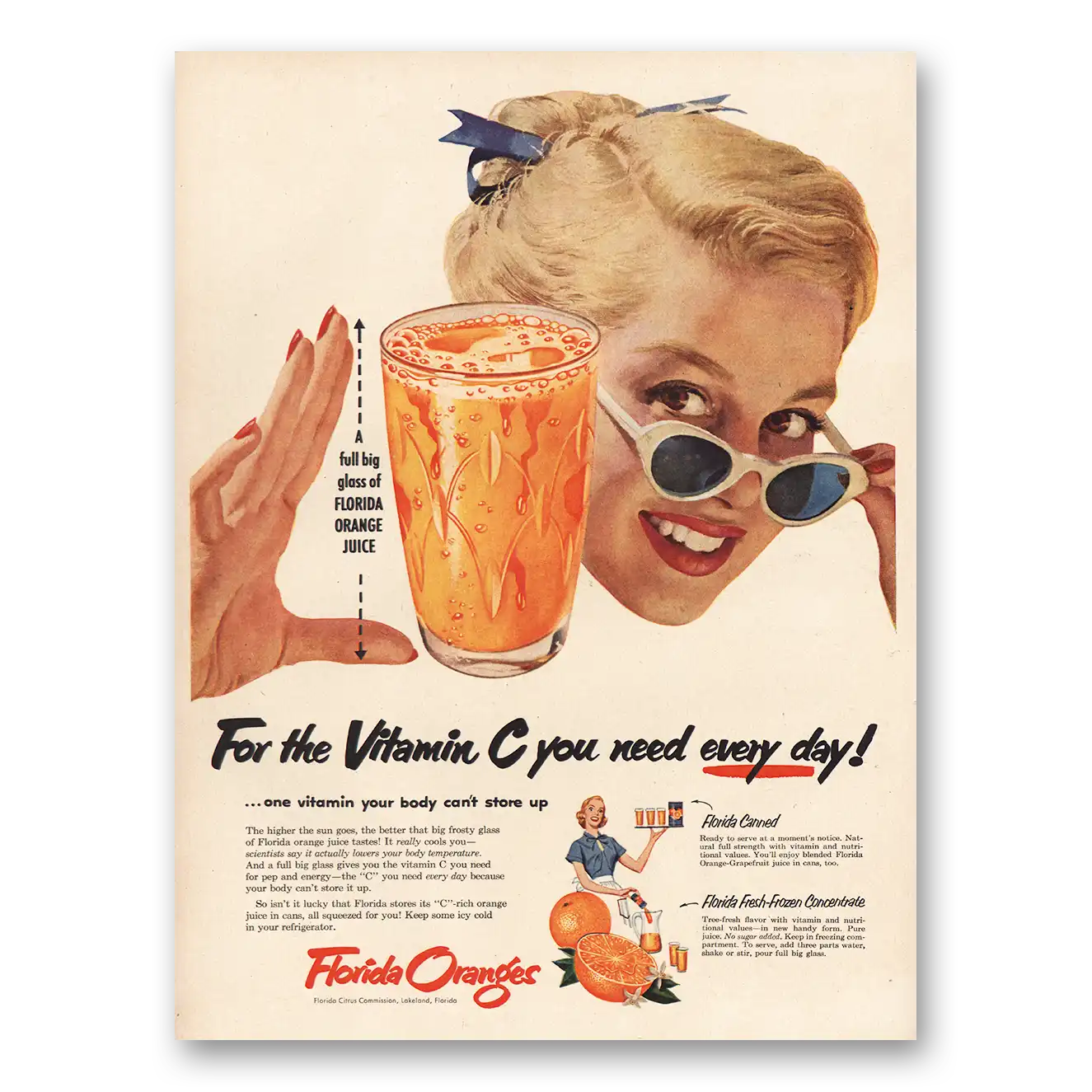 1953 Florida Citrus Print Ad | Vitamin C You Need Every Day