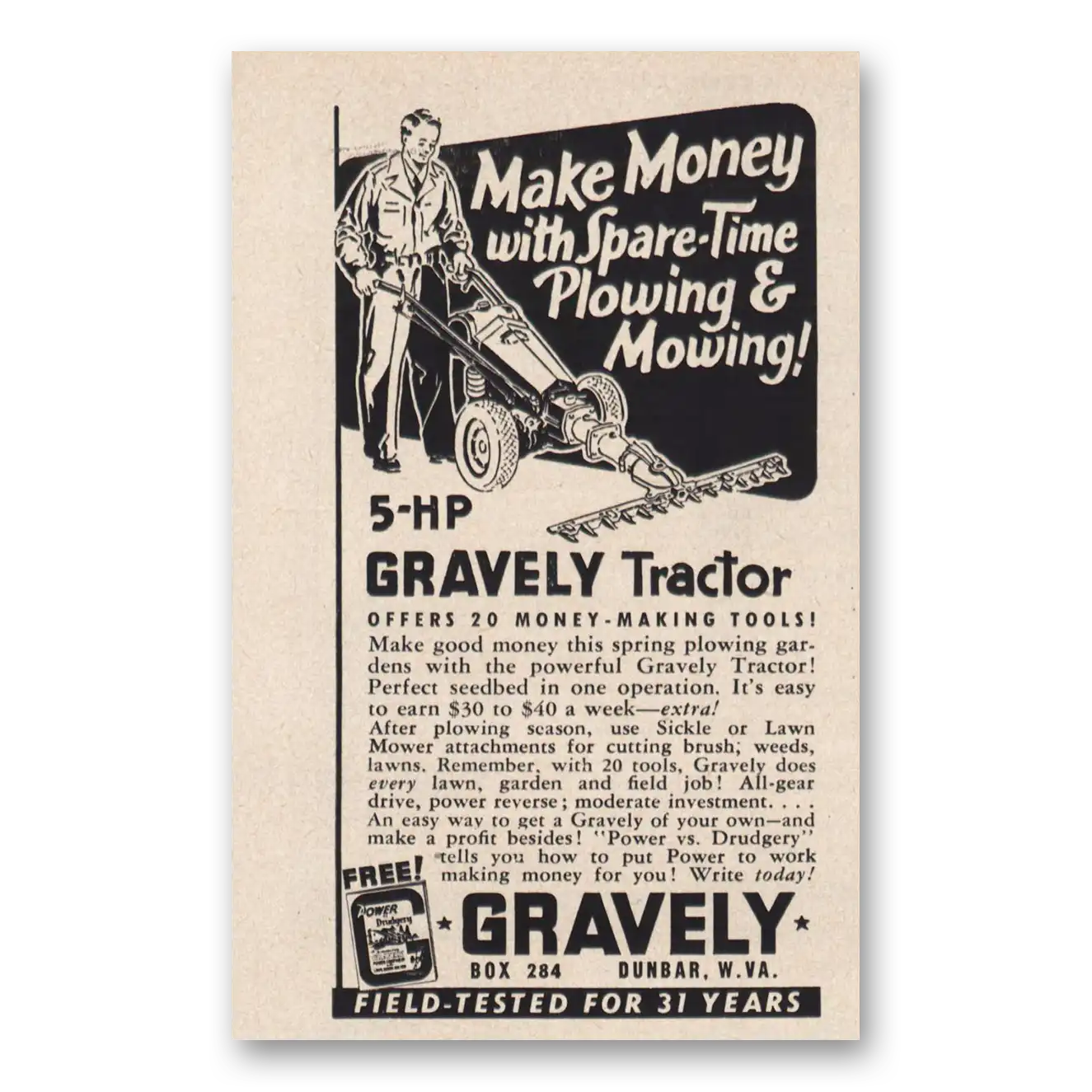 1953 Gravely Tractors Print Ad | Make Money