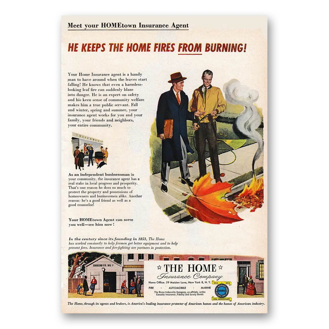 1953 Home Insurance Print Ad | Home Fires Burning