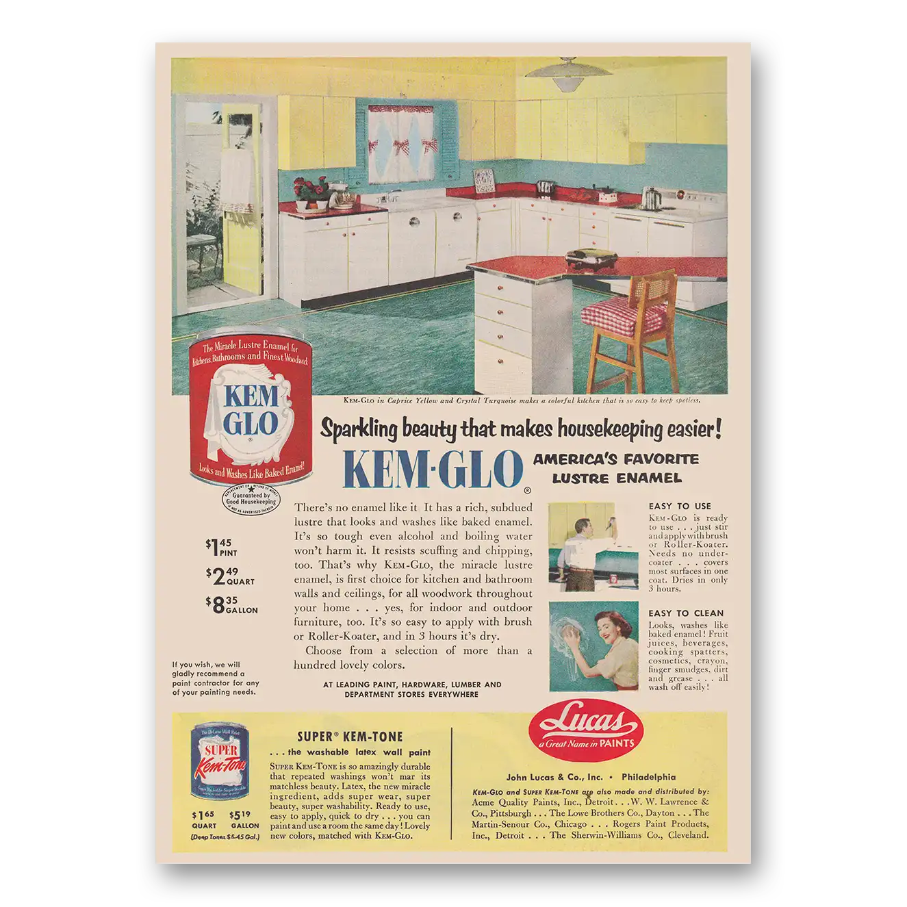 1953 Kem Glo Paint Print Ad | Sparkling Beauty