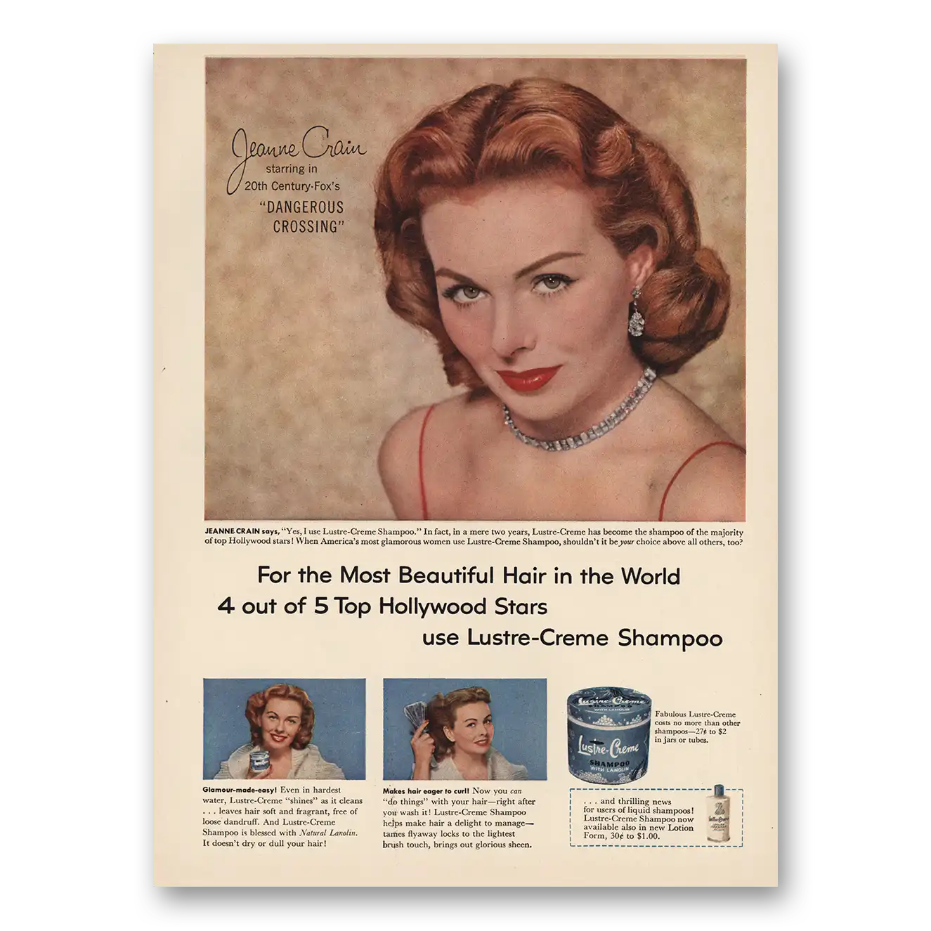 1953 Lustre Creme Shampoo Print Ad | Most Beautiful Hair Jeanne Crain