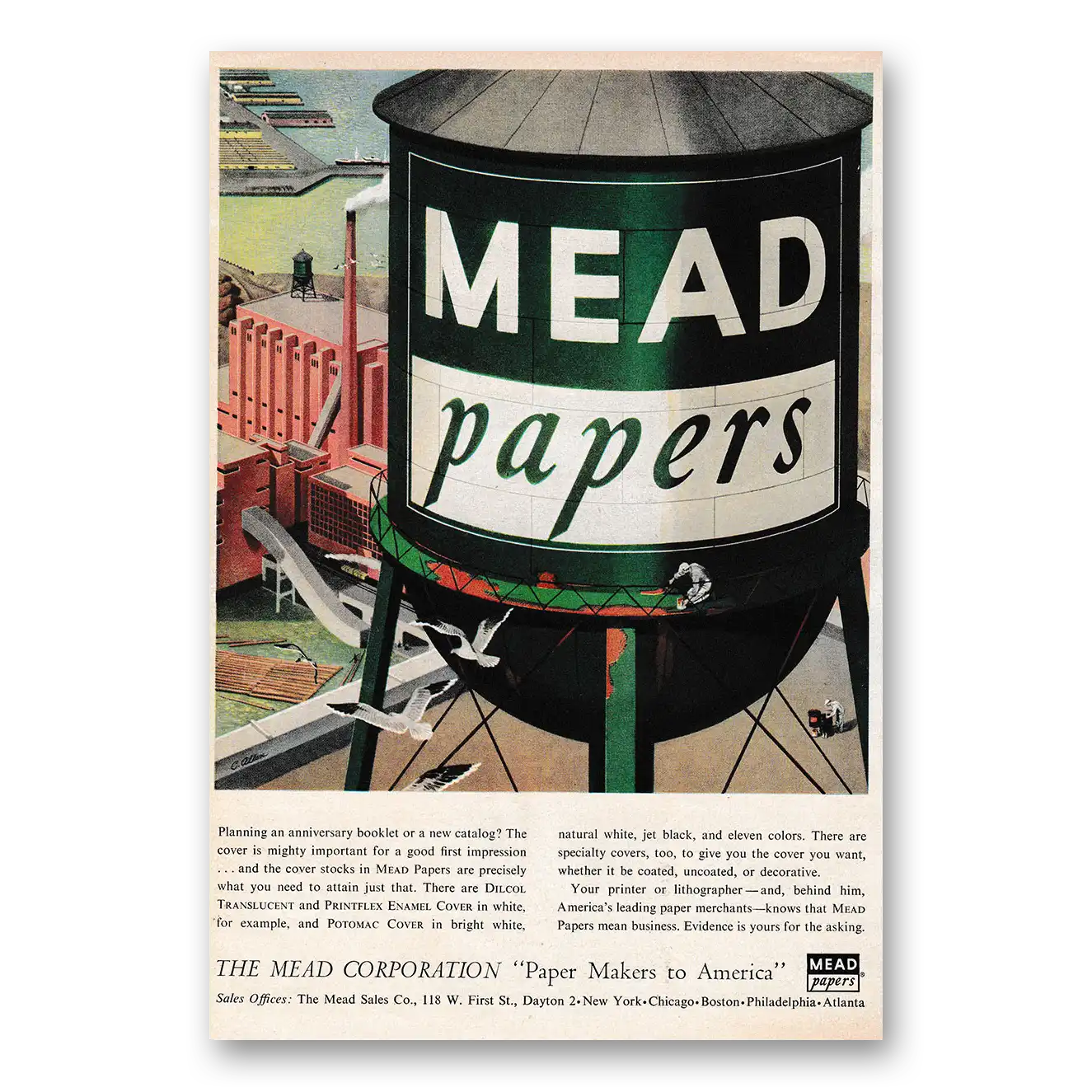 1953 Mead Papers Print Ad | Water Tower